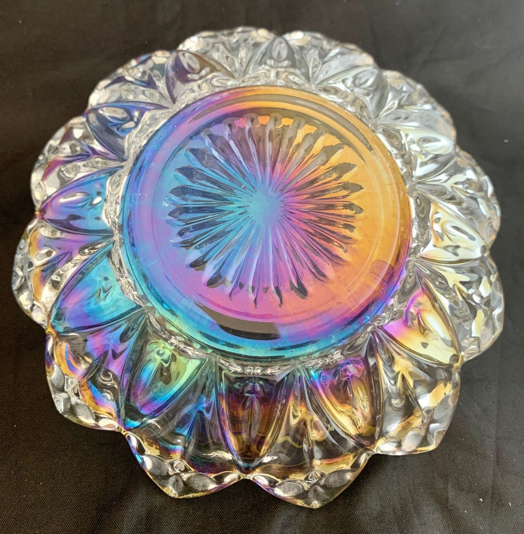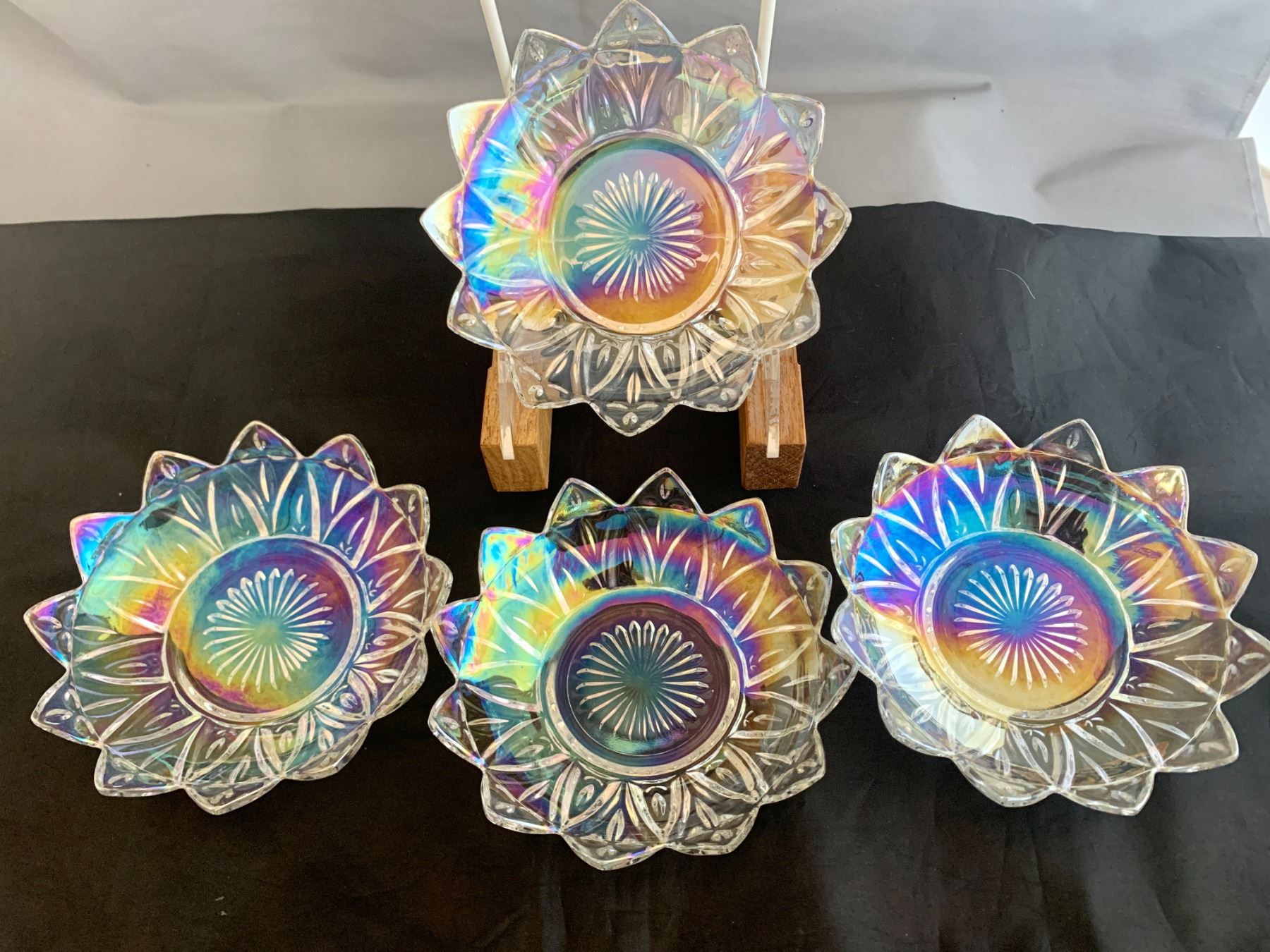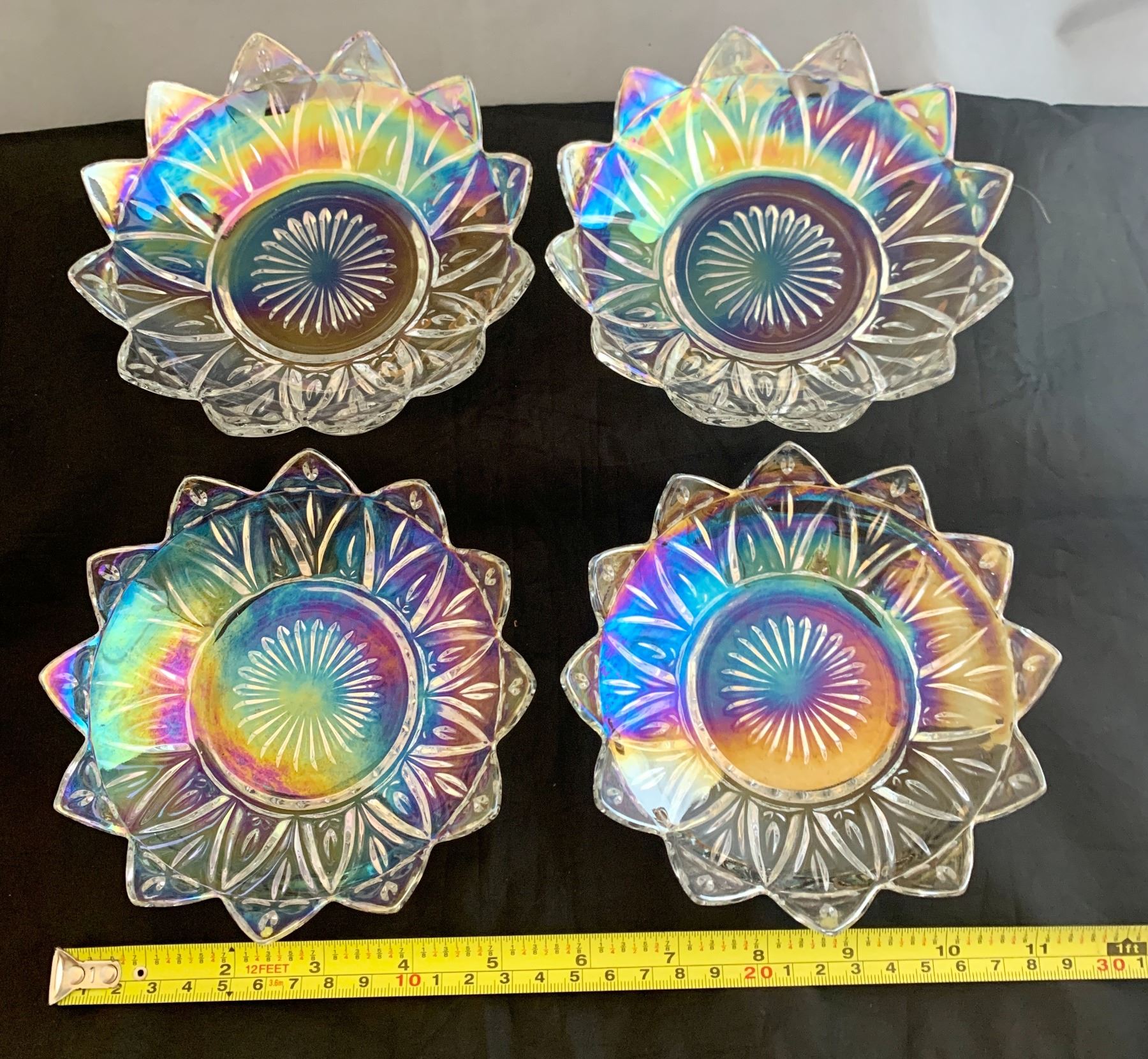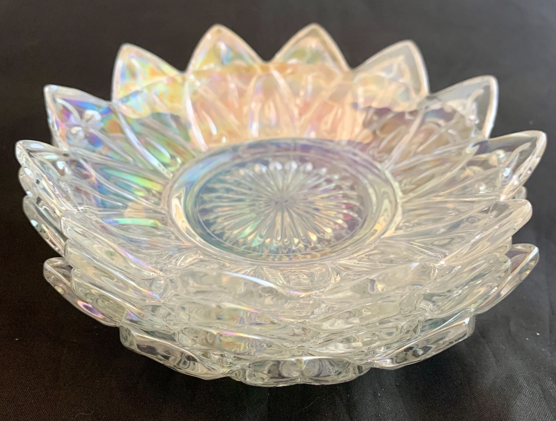 (4) Federal Glass/Frosty White Carnival Glass "Petals" Small Plates (1960s)