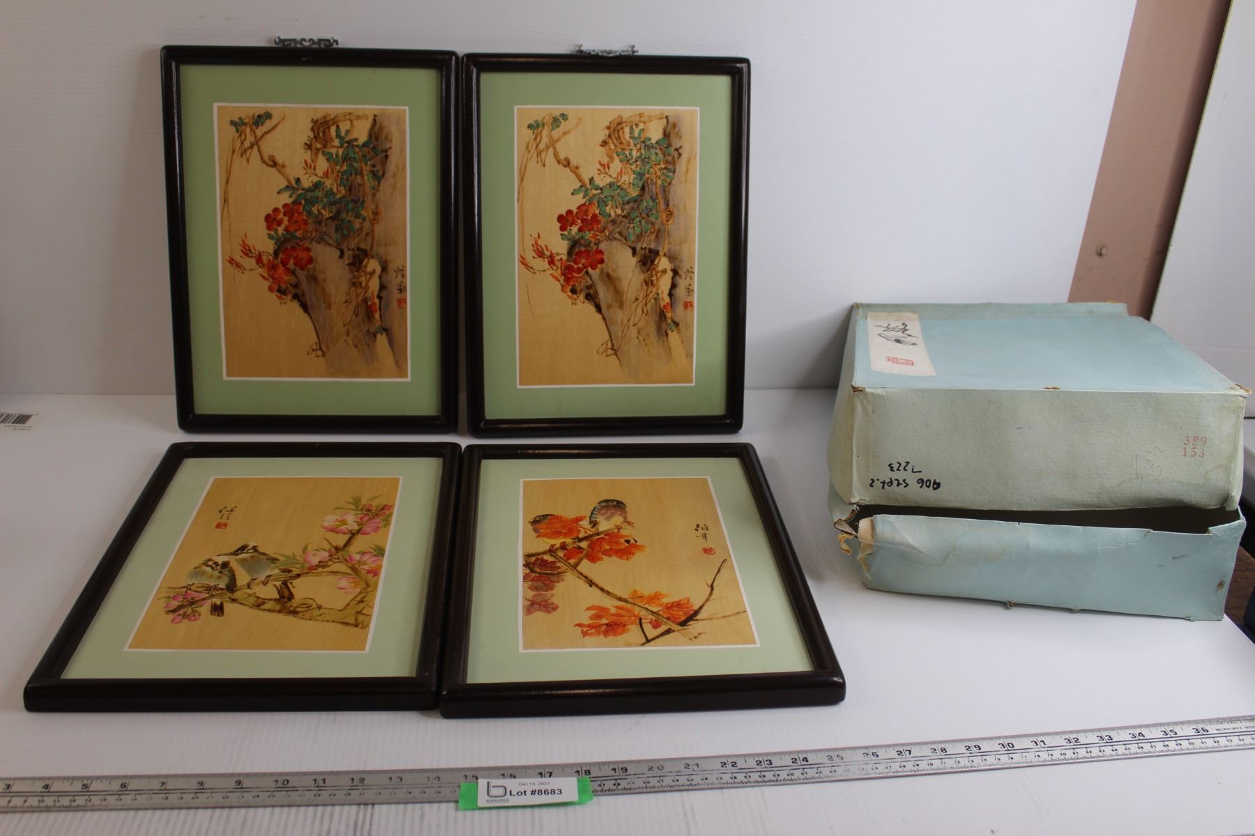 (4) Framed Chinese Art Pieces - 12" x 15 1/2"