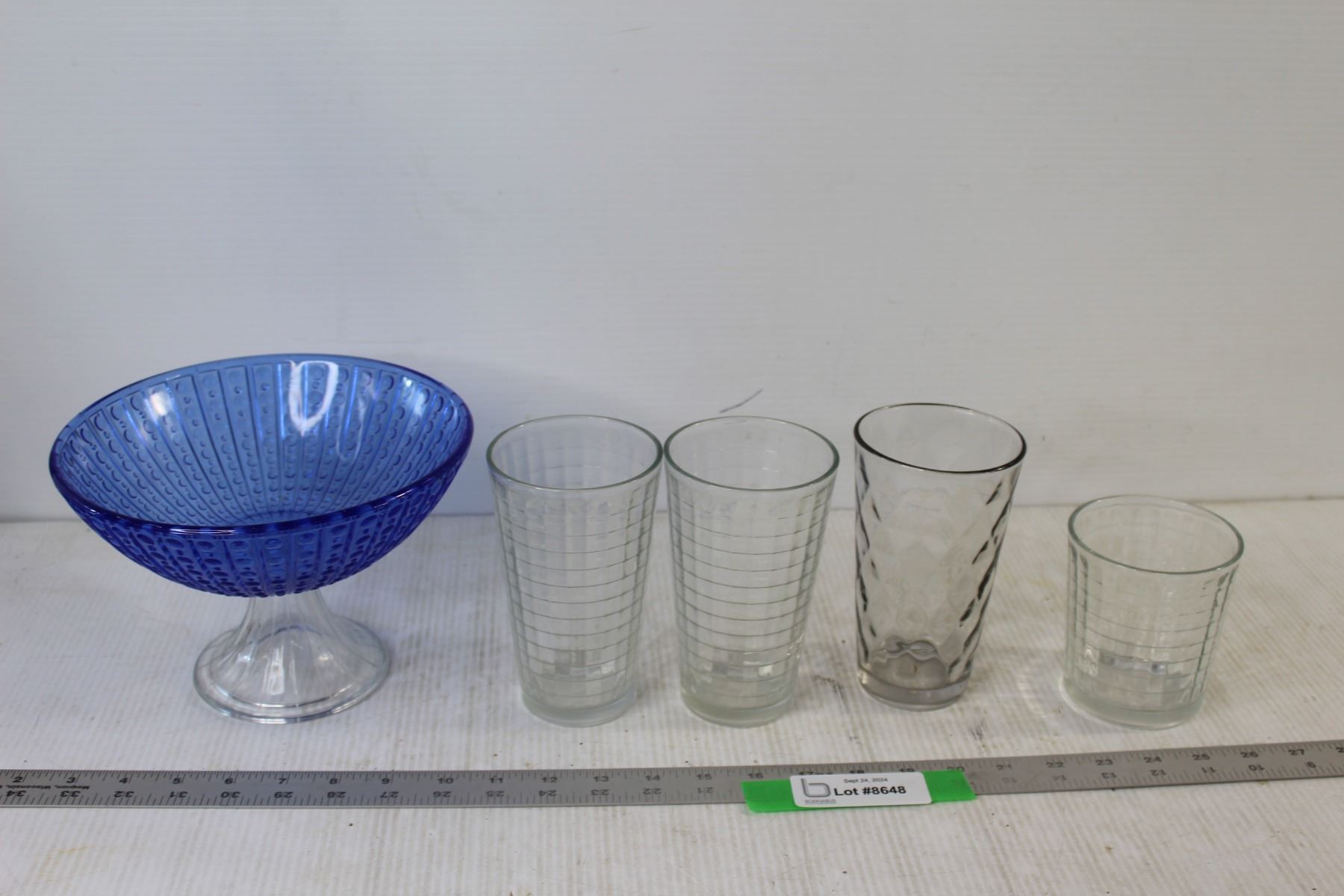 (4) Glass Cups, Glass Raised Candy Dish