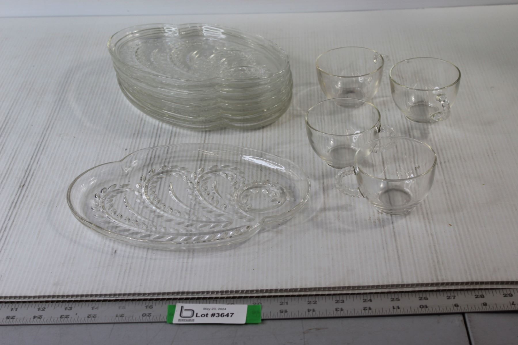 (4) Glass Dainty Sets w/ (2) Extra Plates