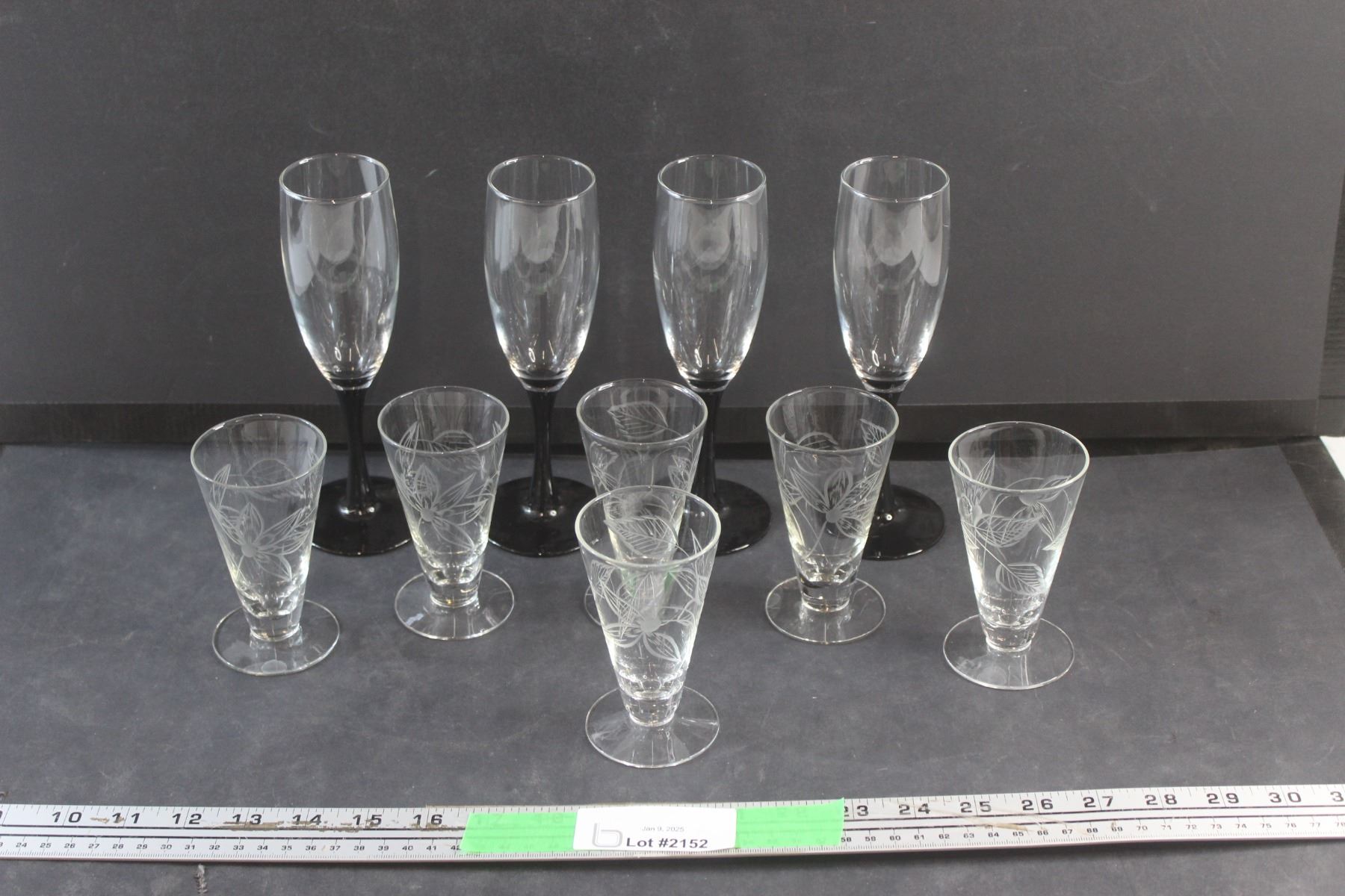 (4) Glass Stemware Glasses and (6) Liquor Glasses