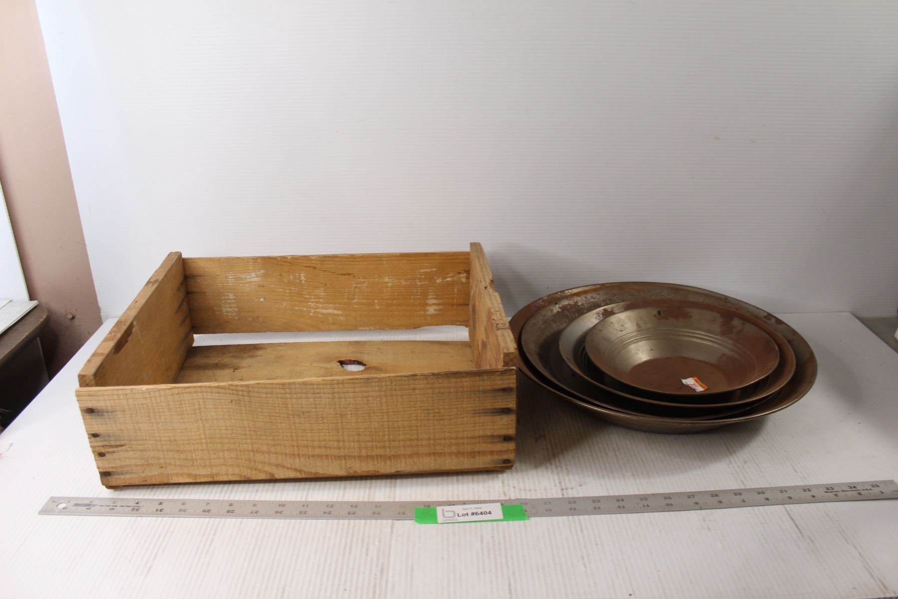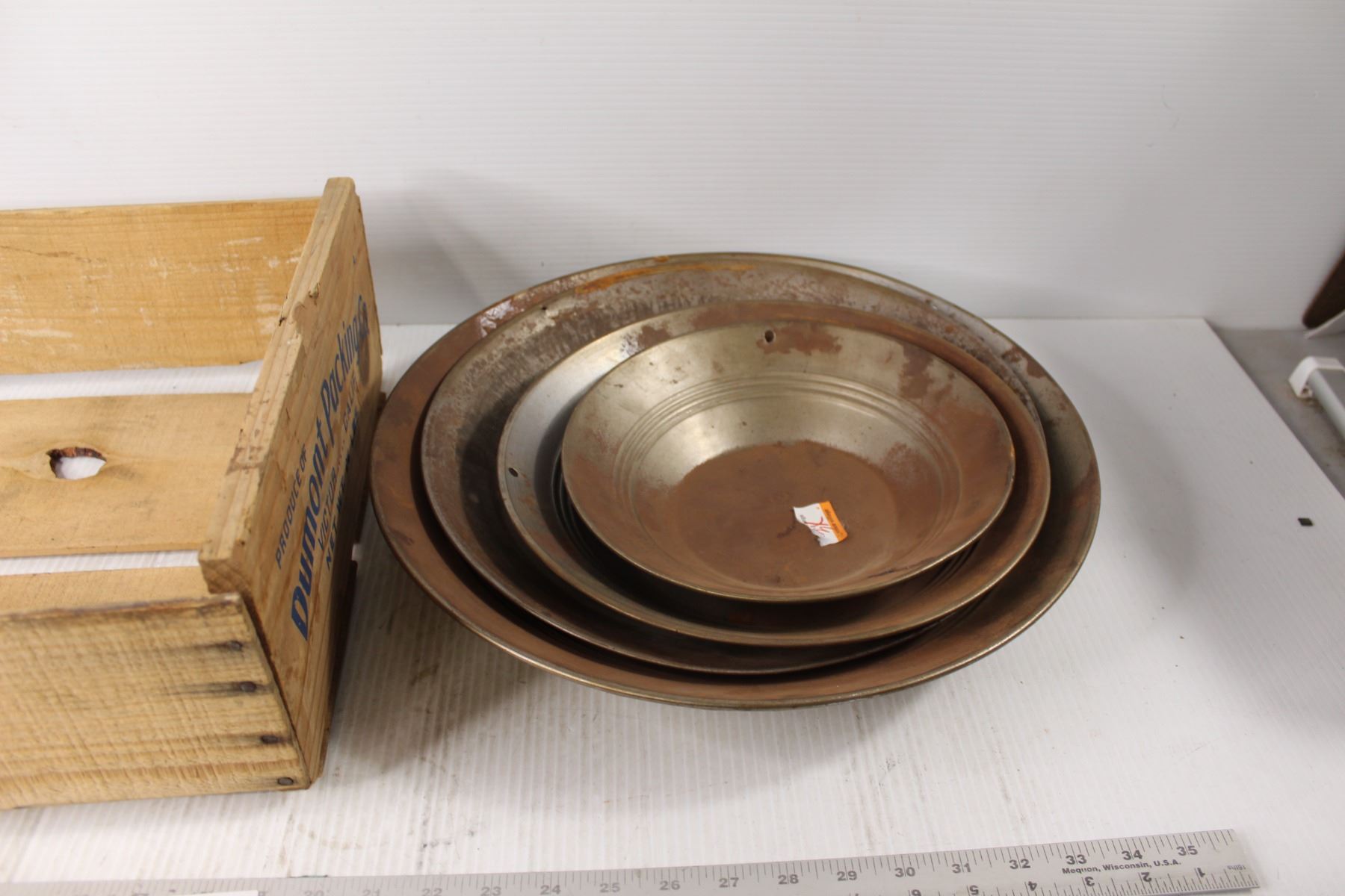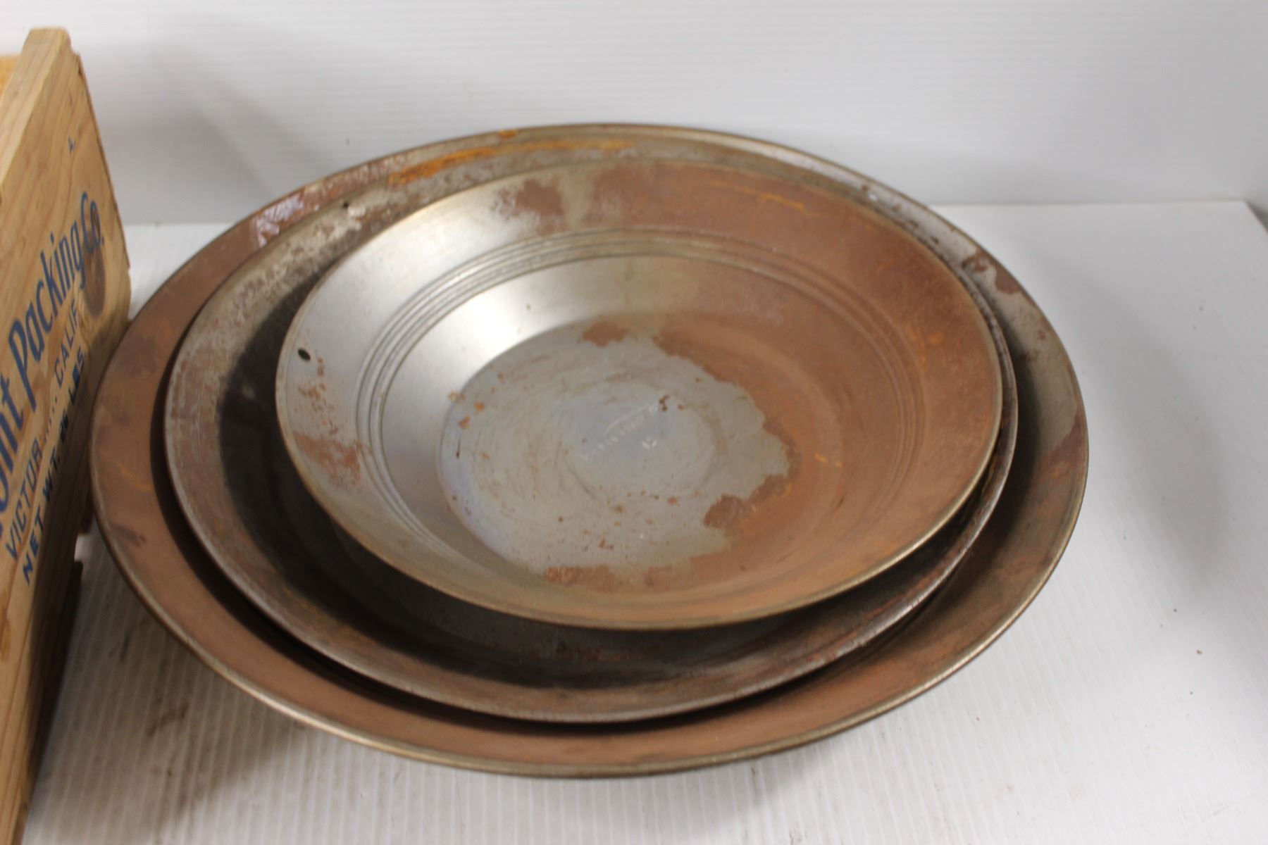 (4) Gold Panning Pans, Wooden Crate