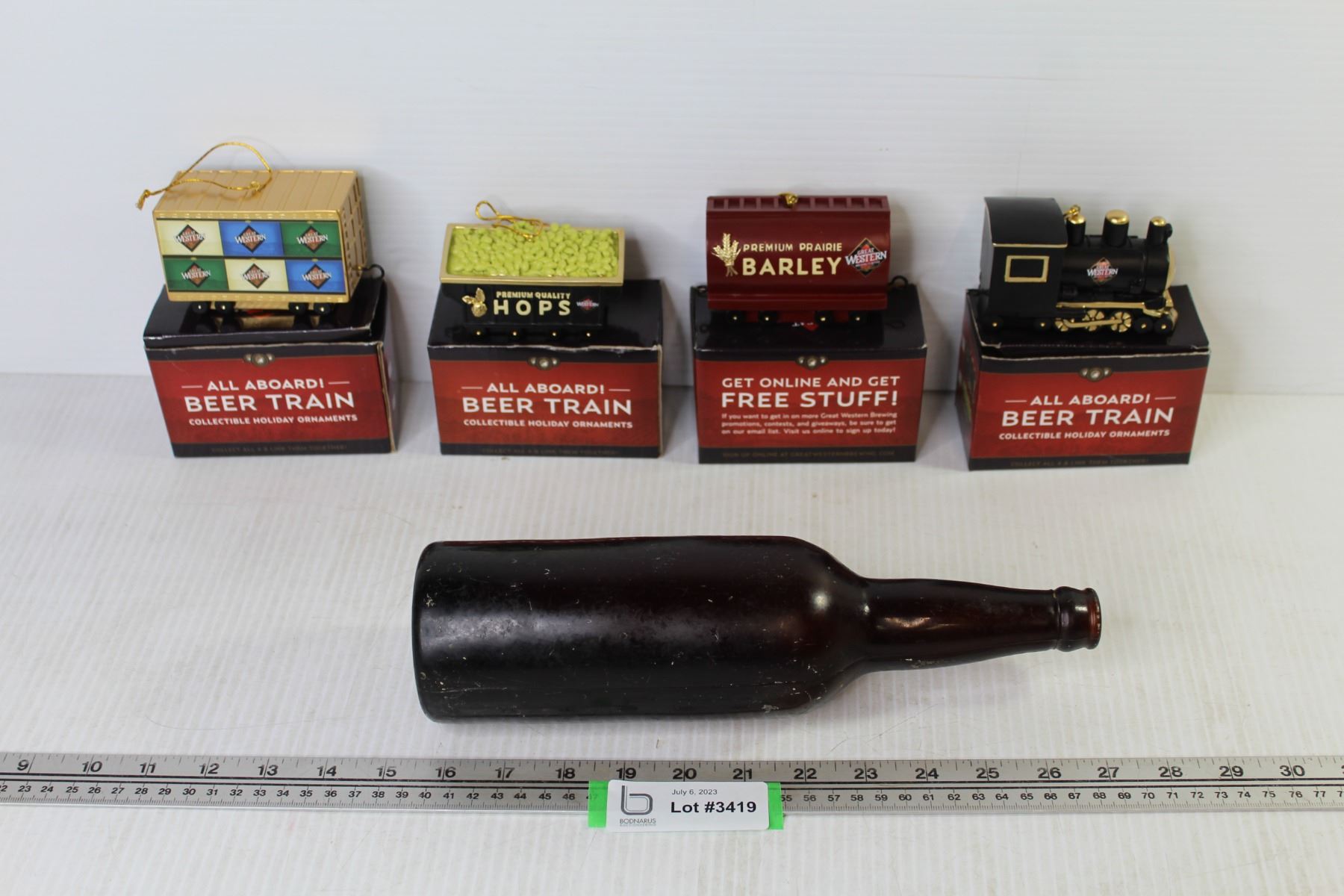 (4) Great Western All Aboard Train Cars - Brown Bottle