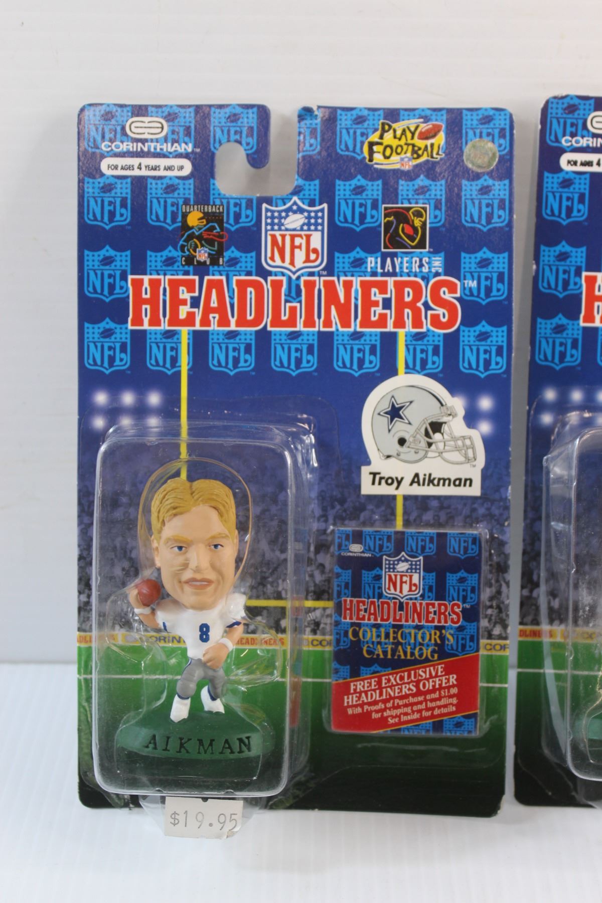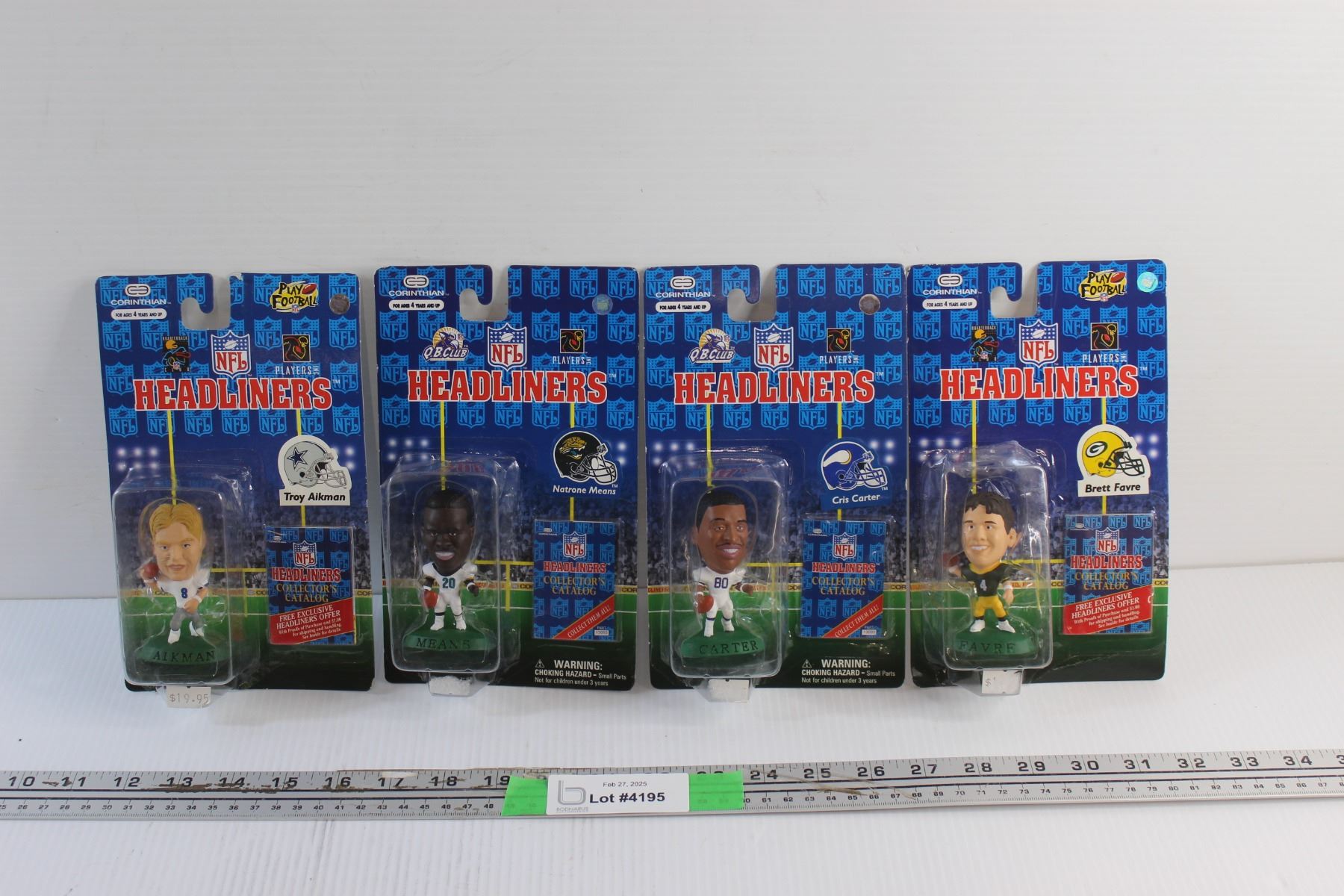 (4) Headliners NFL Collectible Figures and Catalogues - Brett Favre, Troy Aikman, Natrone Means and Cris Carter