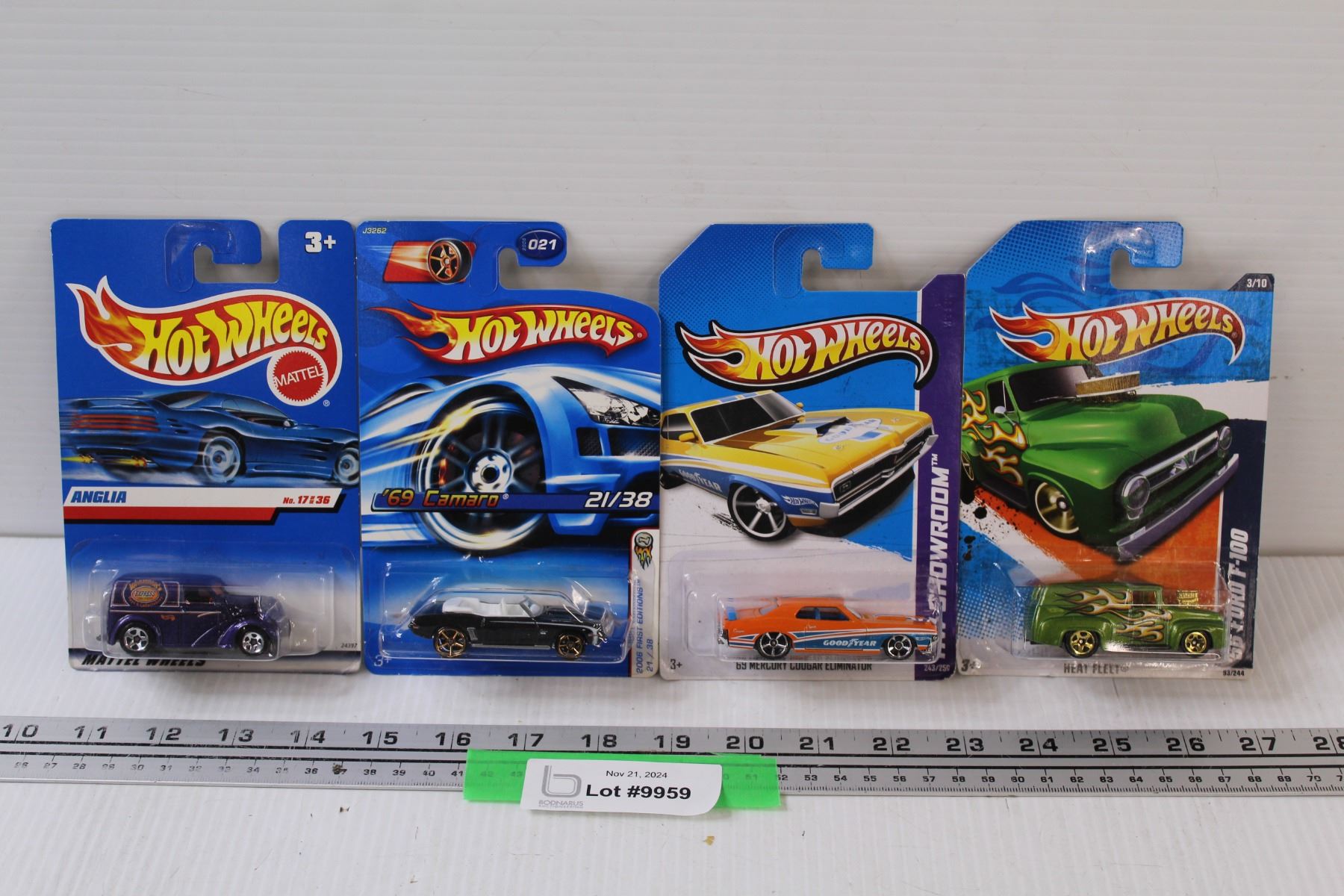 (4) Hot Wheels (NIB): Camaro, Anglia, Cougar, Ford F-100