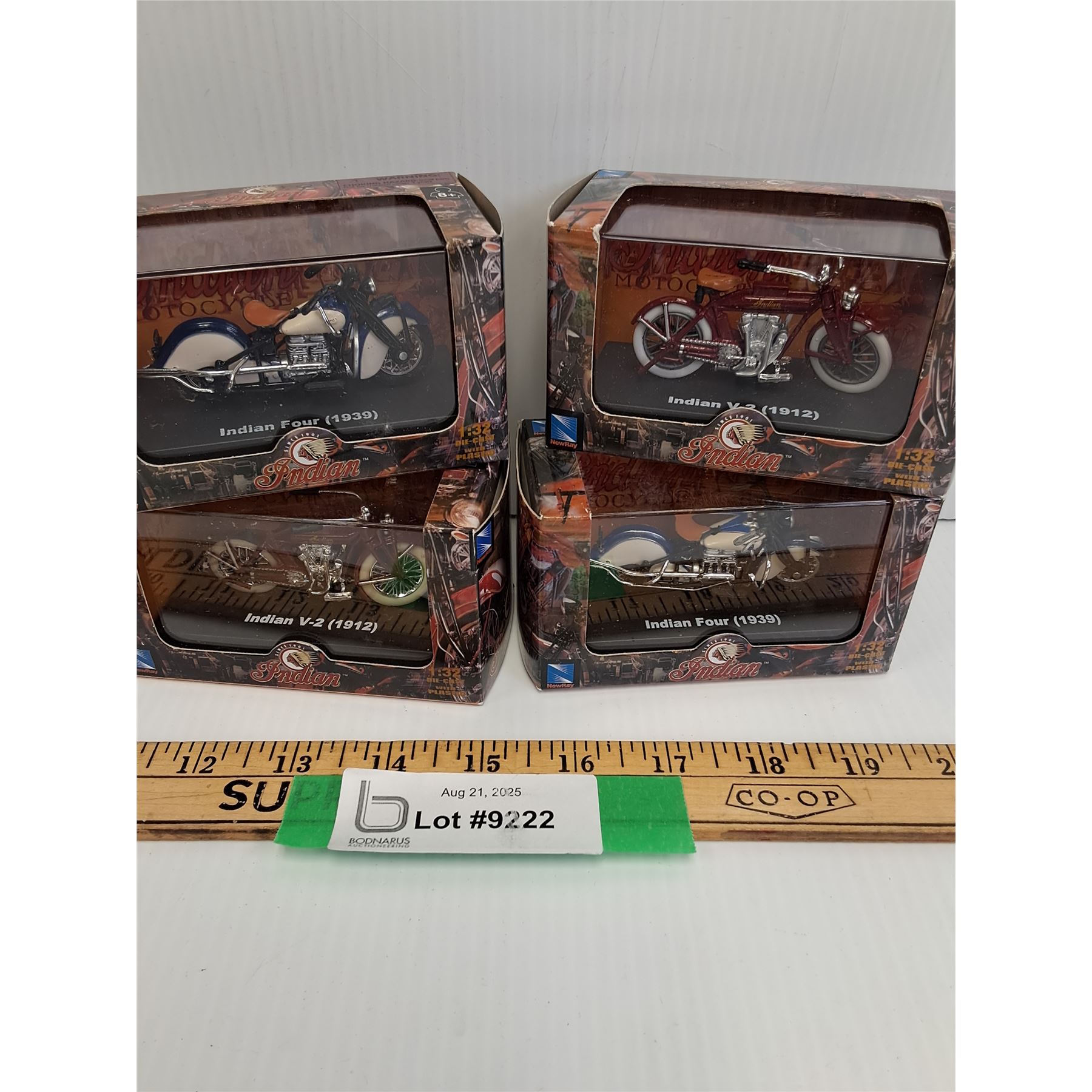 (4) Indian Motorcycles Die Cast Models - 1:32 Scale