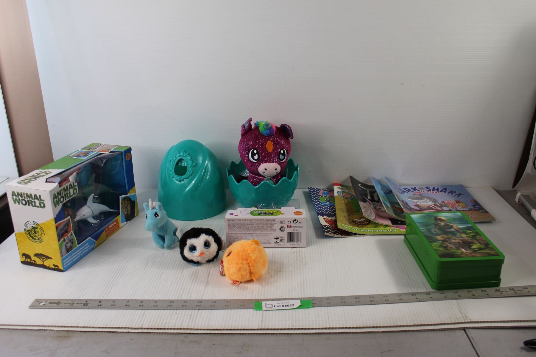 (4) Kids Plushies, Dinosaur Lunchbox, (5) Kids Books, Assorted Kids Toys
