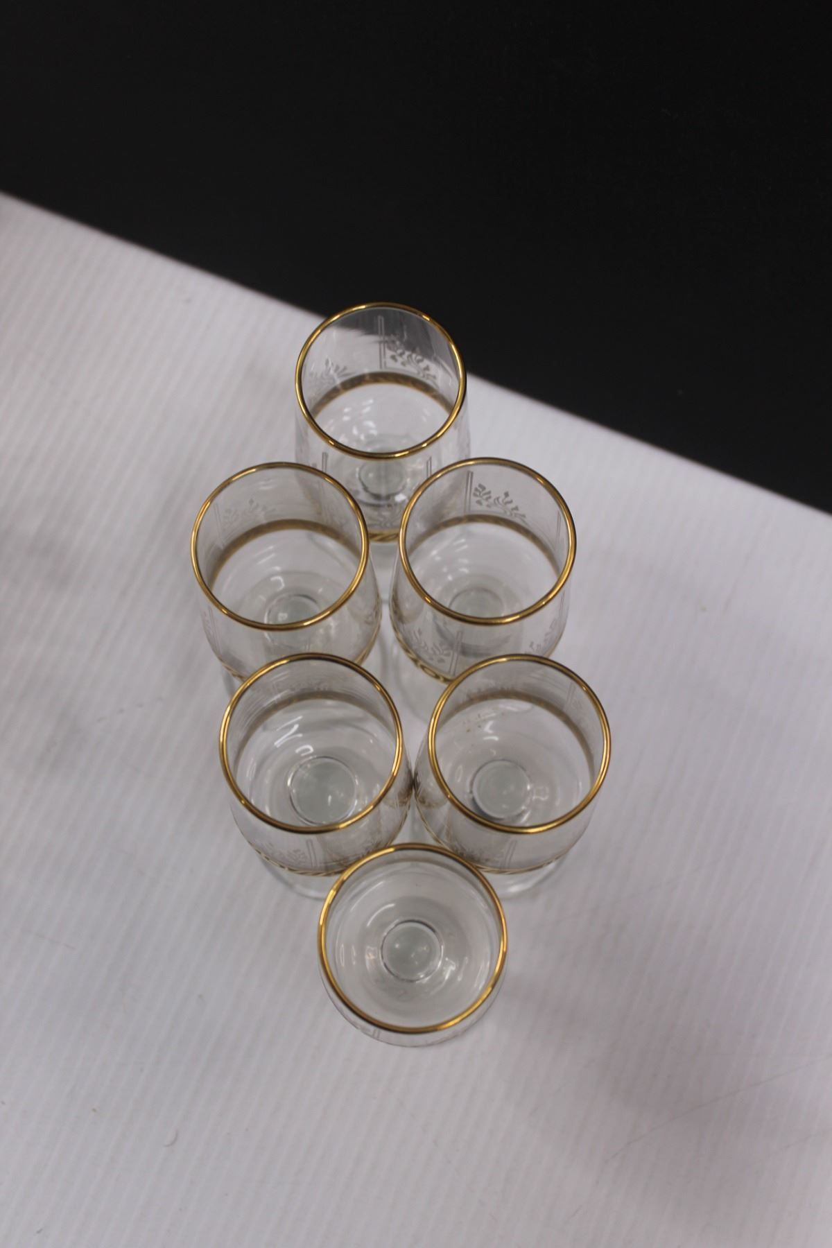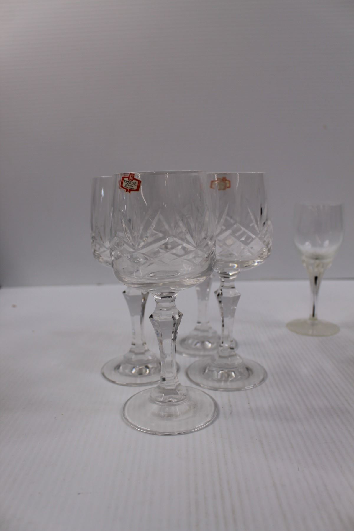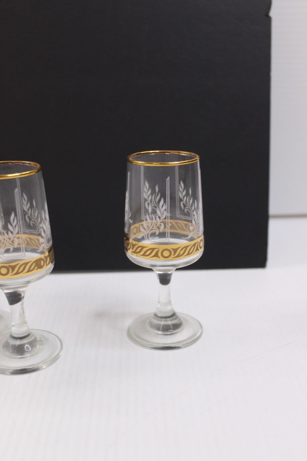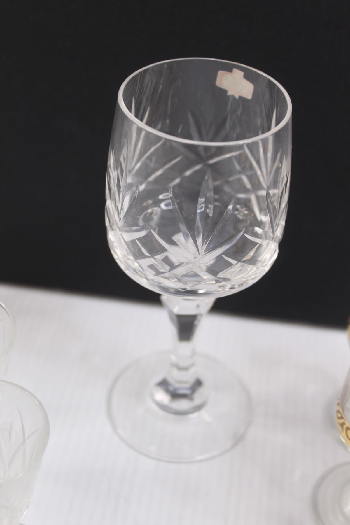 (4) Krystal Lead Crystal Wine Glasses (24% Lead), Glass Flower Wine Glass & Two Sets Of Liqueur Glasses (1) With Gold Trim
