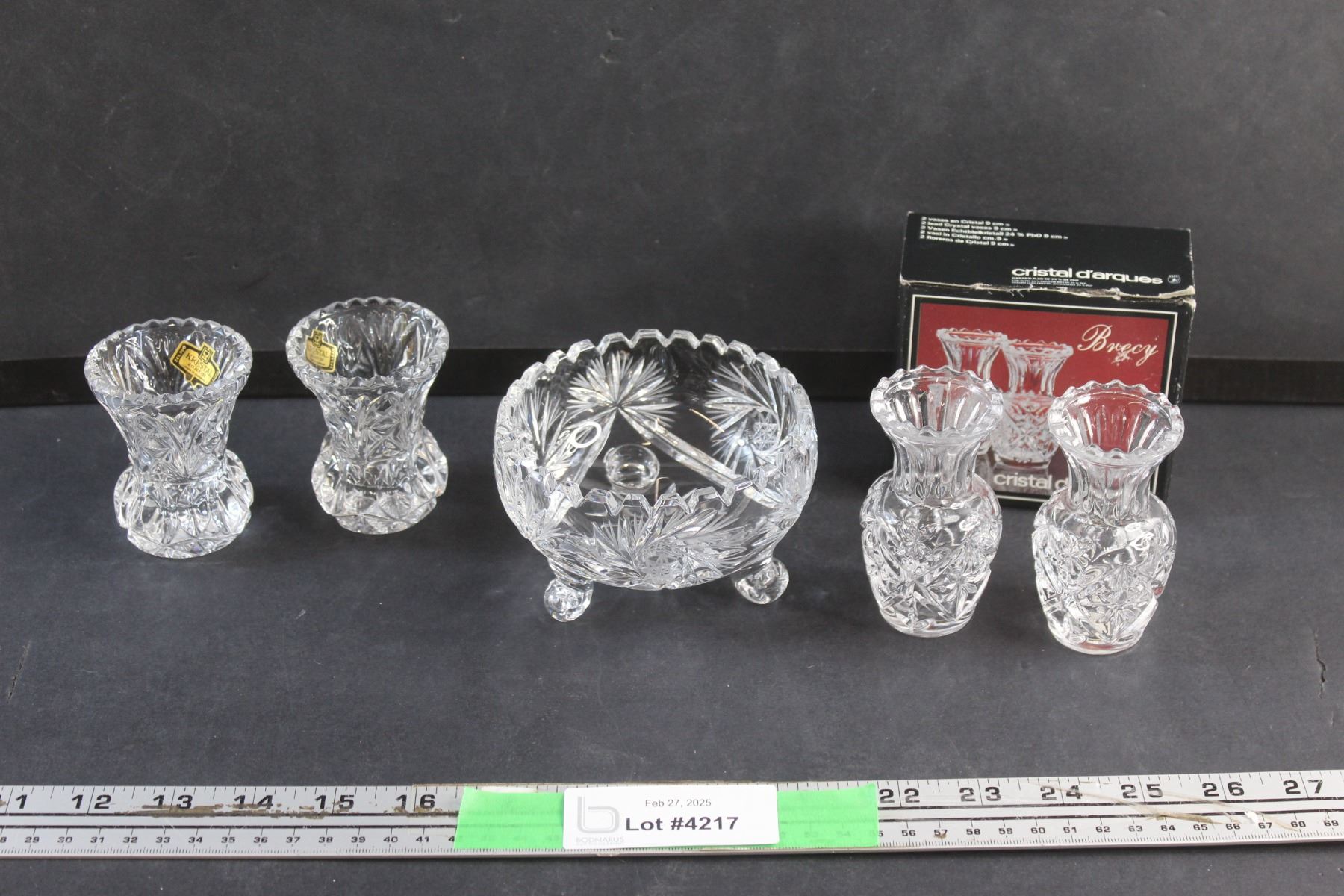 (4) Lead Crystal Vases and Candy Dish