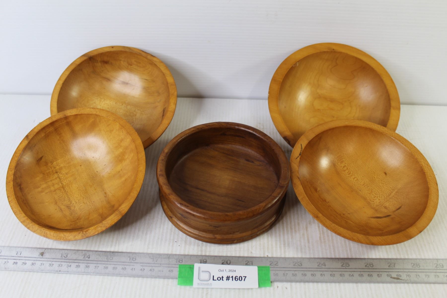 (4) Lesco Mid Century Modern Wooden Bowls (Made in Canada) - Small Teak Bowl (Made in Thailand)