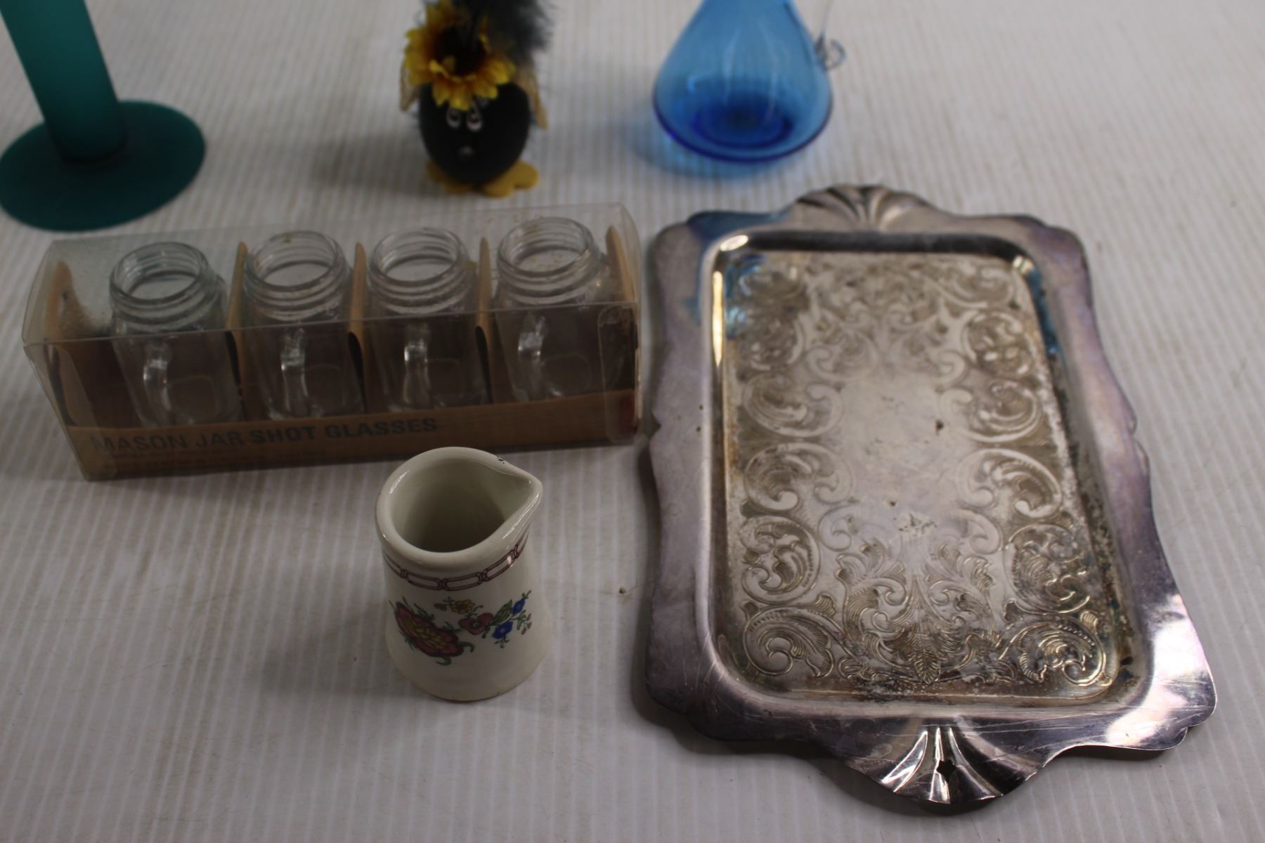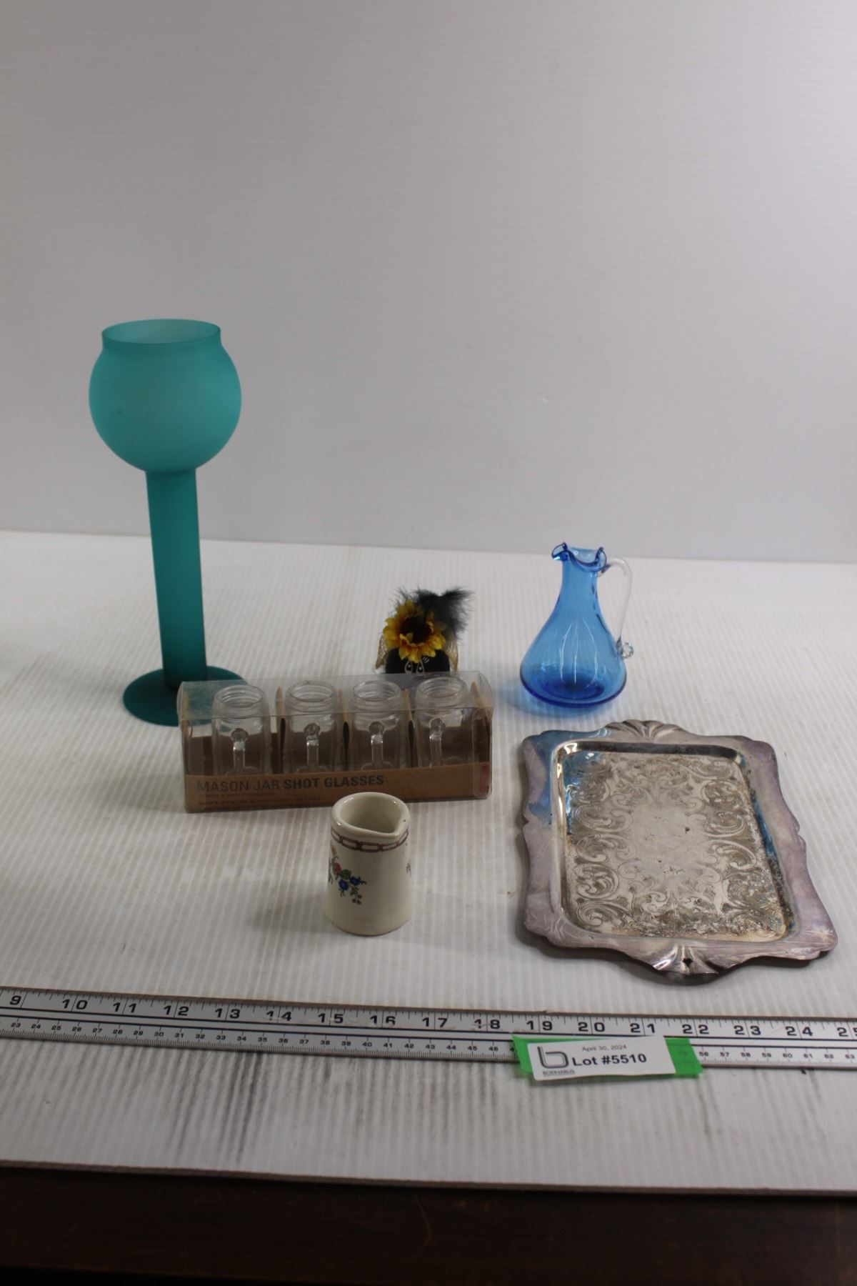 (4) Mason Jar Shot Glasses, Tray, Misc.