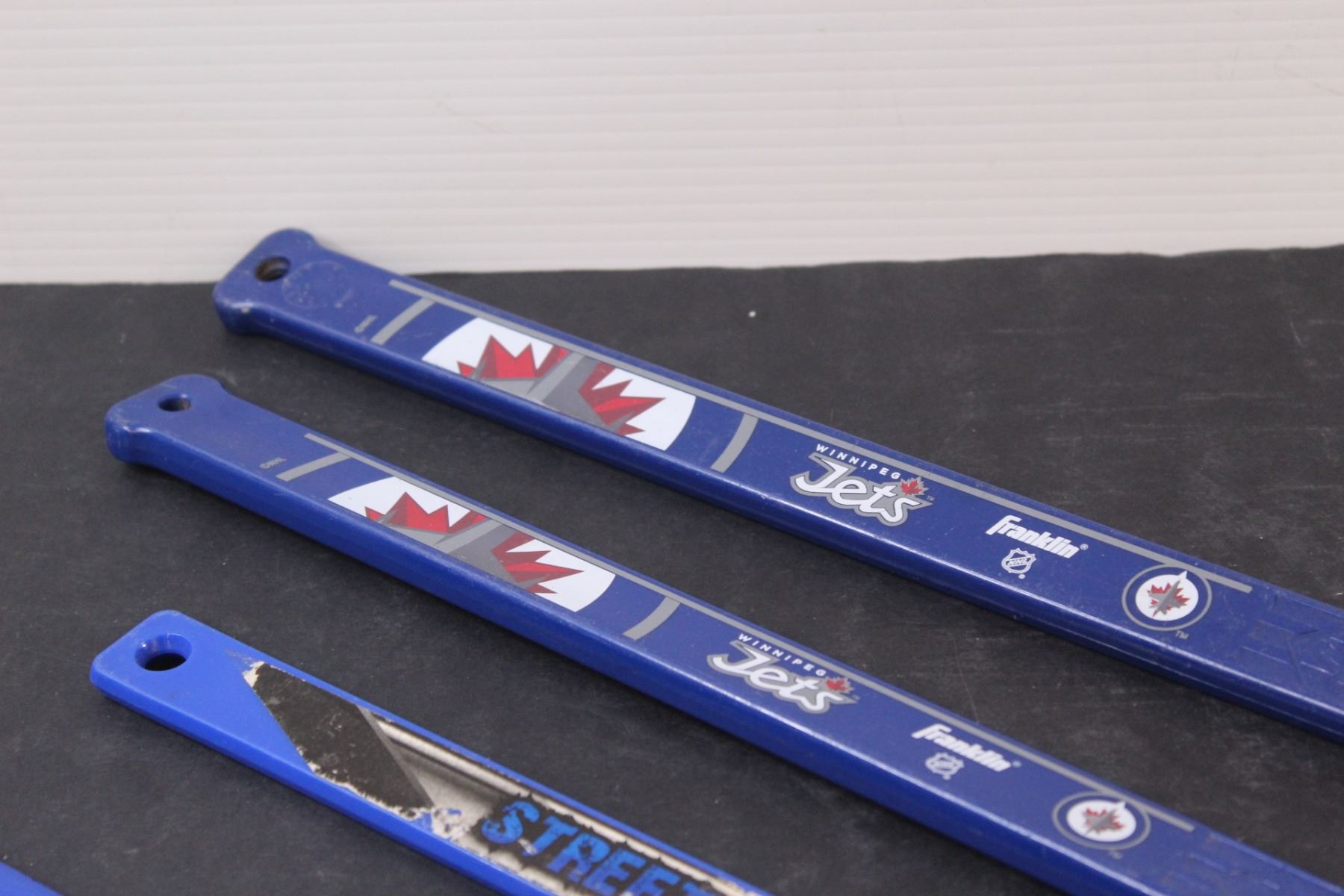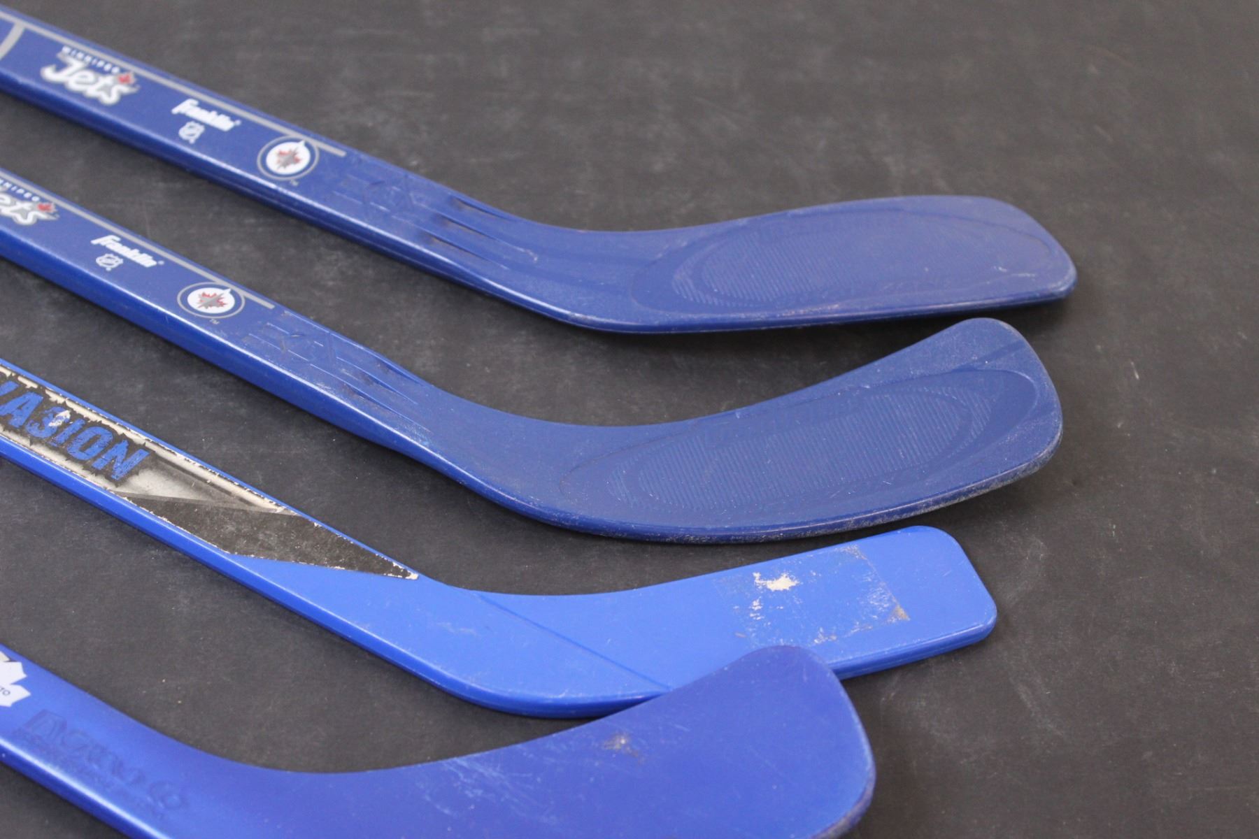 (4) Mini Hockey Sticks: Winnipeg Jets, Toronto Maple Leafs, Misc.