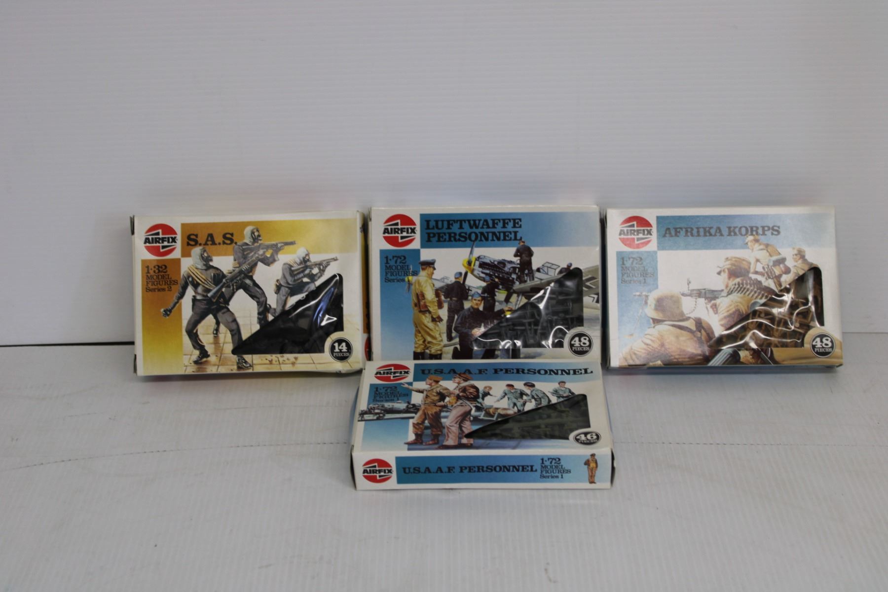 (4) Model Army Solider Sets: German, Afrika, SAS, USA AF