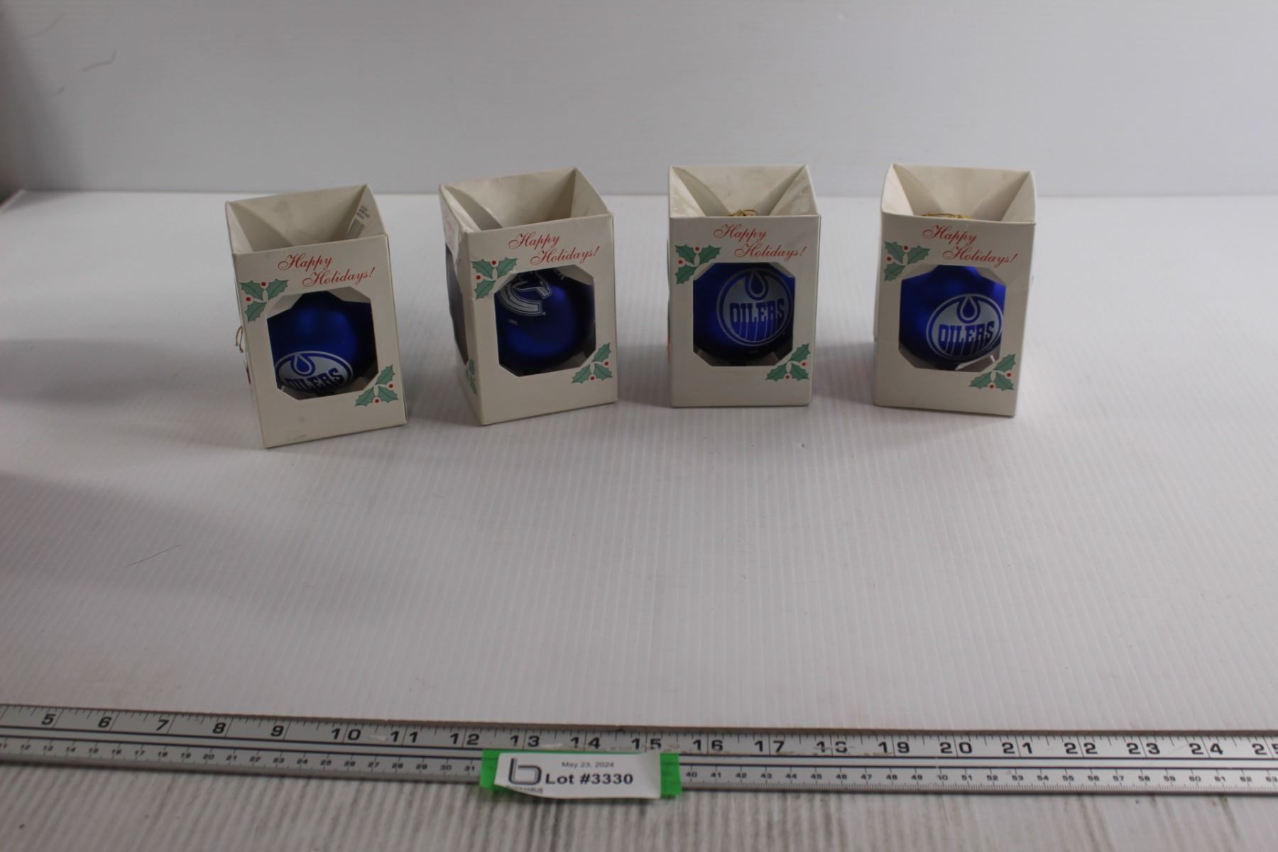 (4) NHL Christmas Ornaments - Edmonton Oilers, Vancouver Canucks