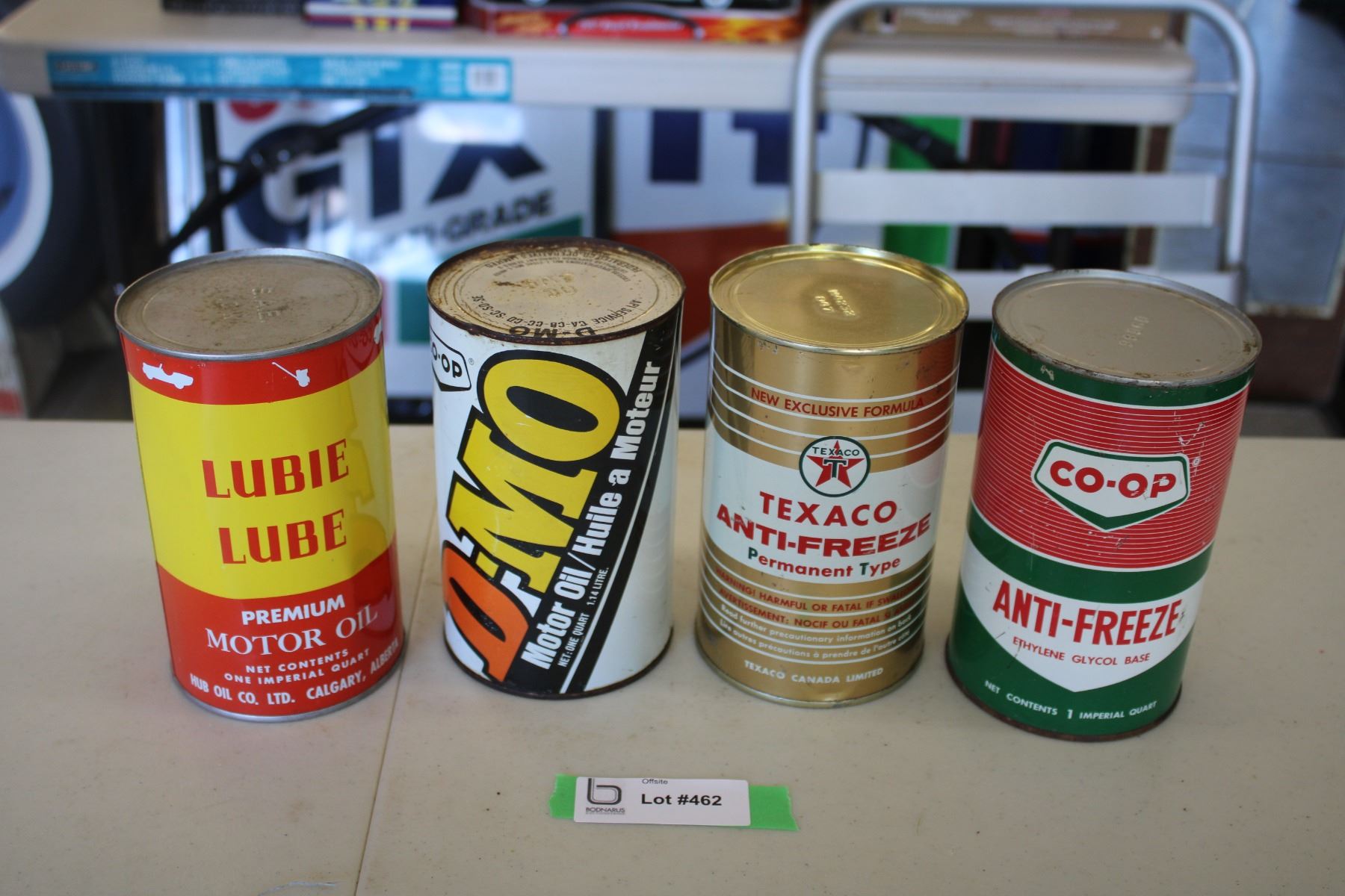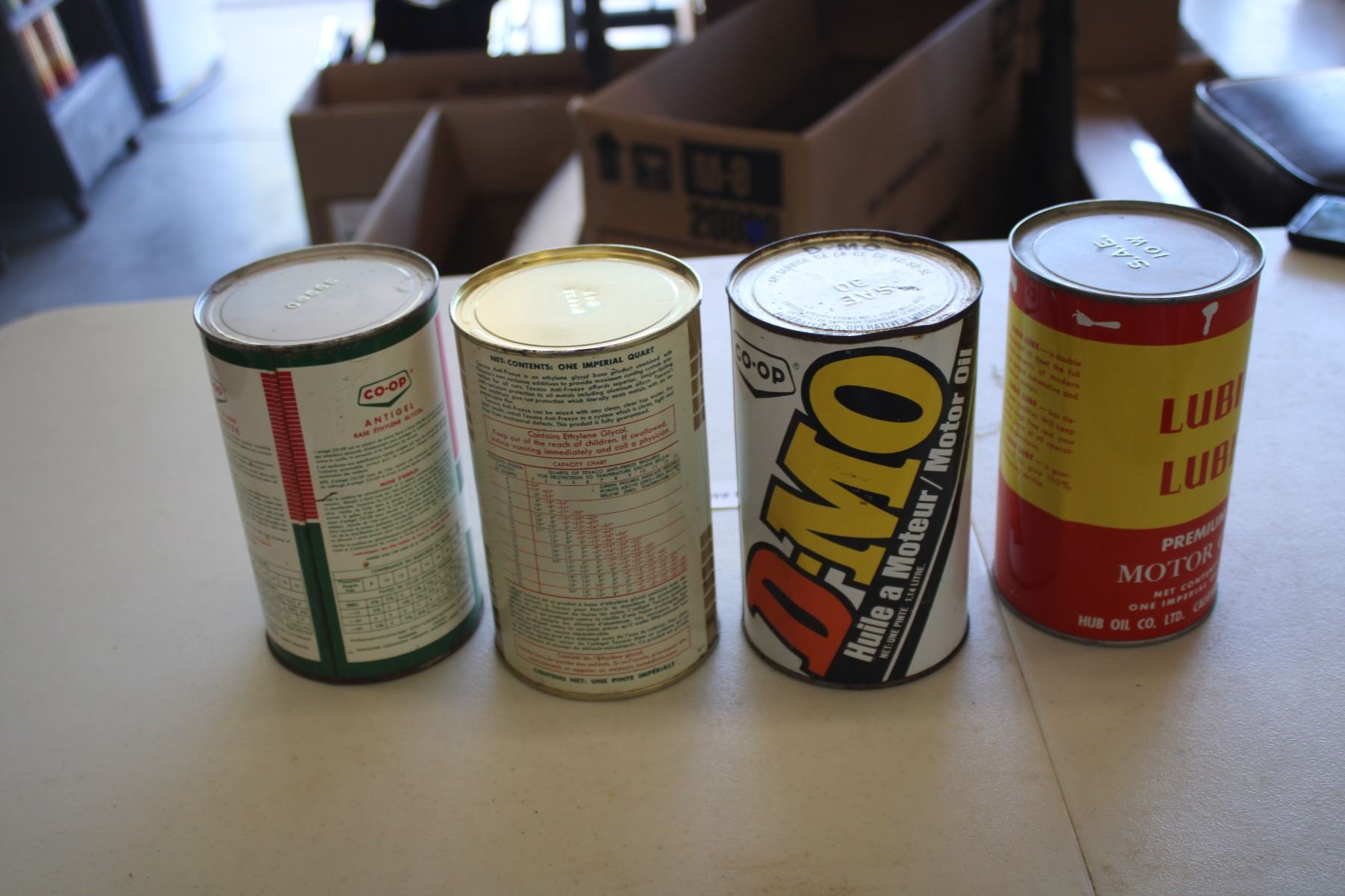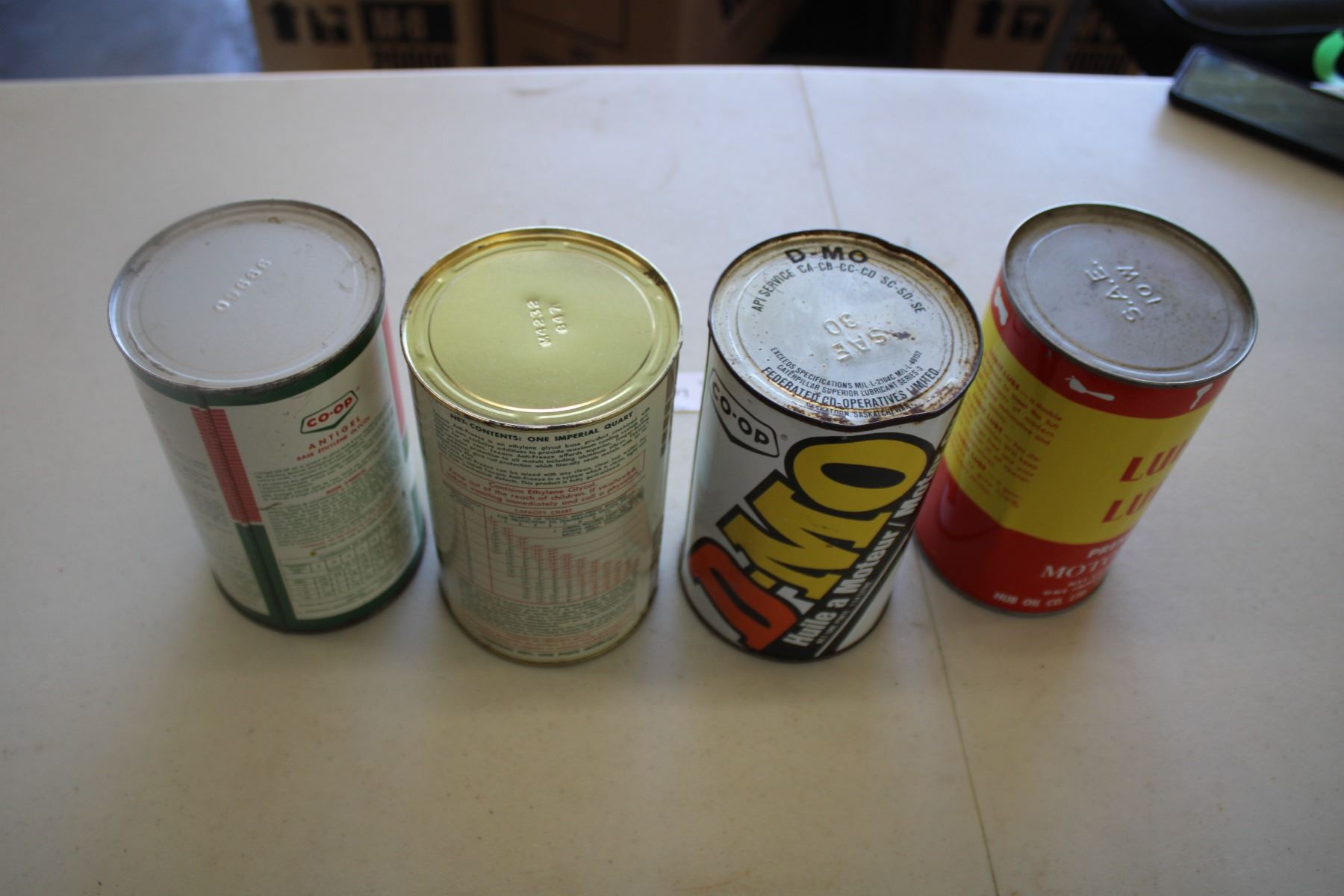 (4) Oil Cans - Lubie Lube, Co-Op D-MO, Texaco, Co-Op