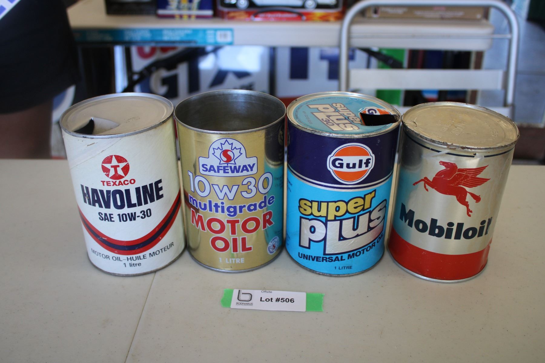 (4) Oil Cans -Texaco, Safeway, Gulf, Mobiloil