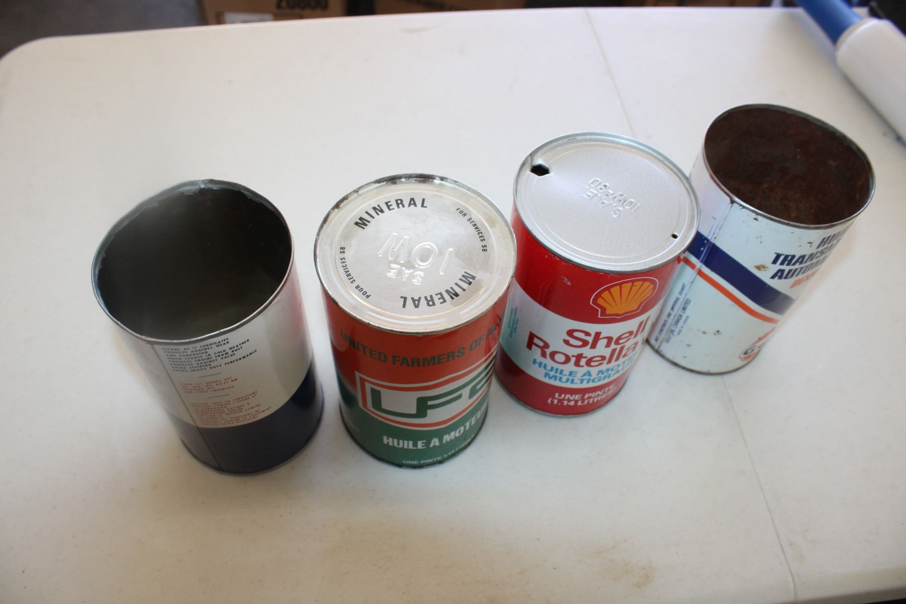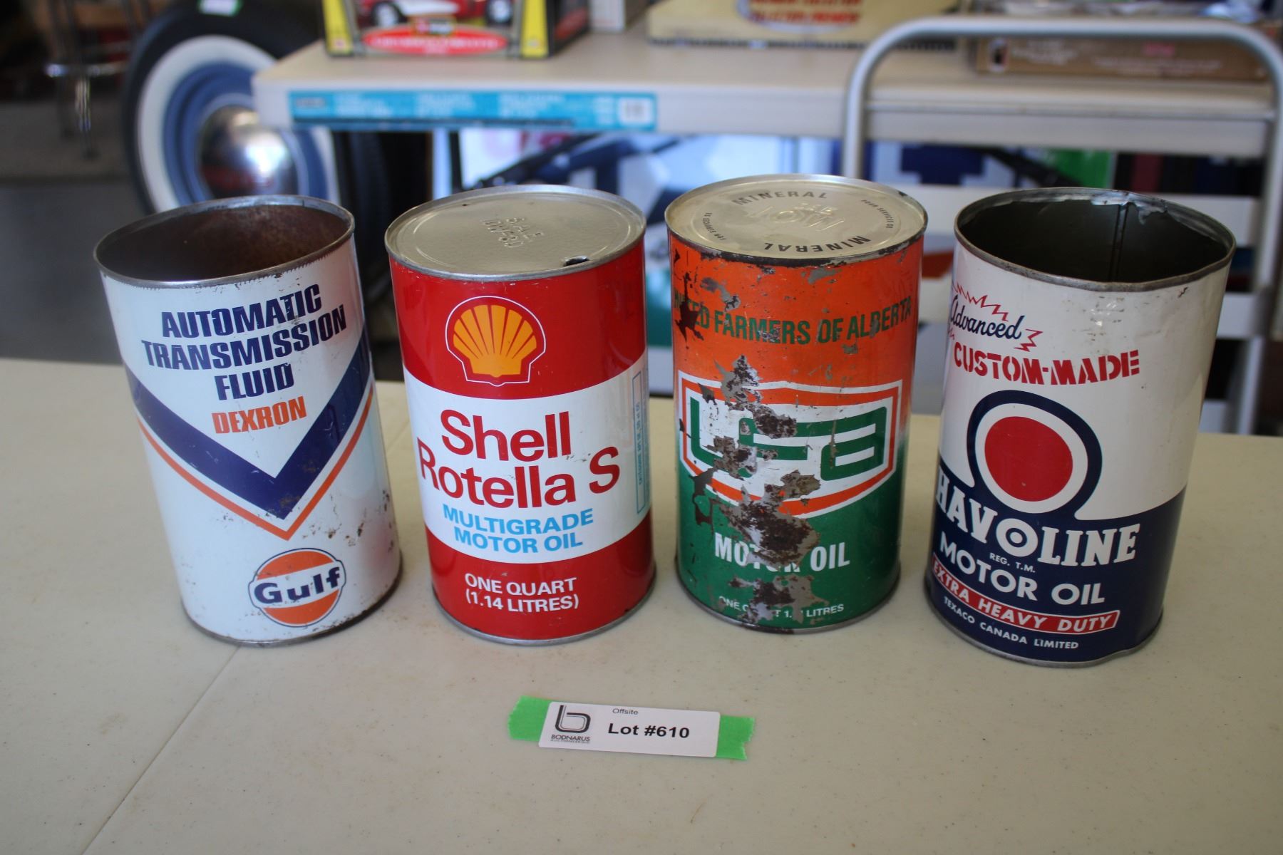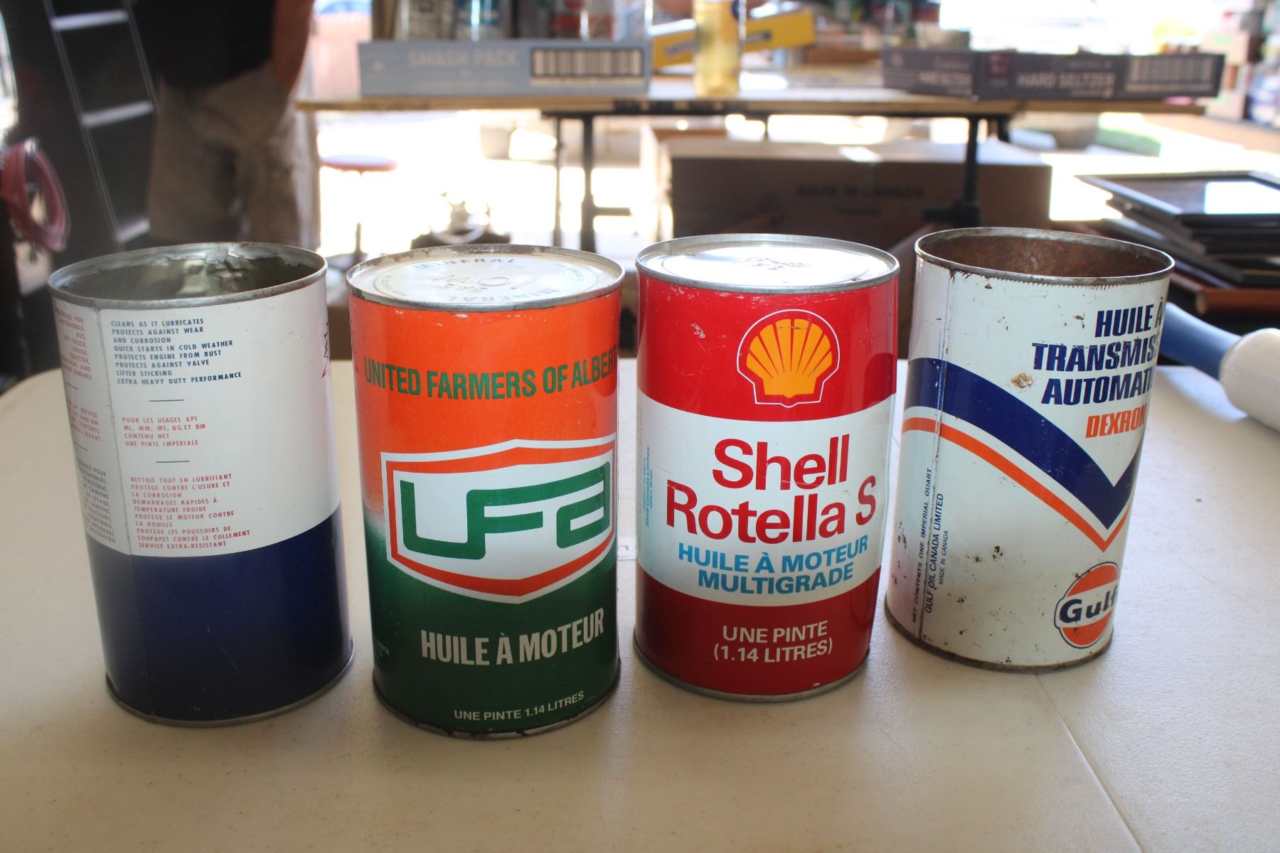 (4) Oil can - Gulf ATF, Shell Rotella S, UFA, Texaco Havoline