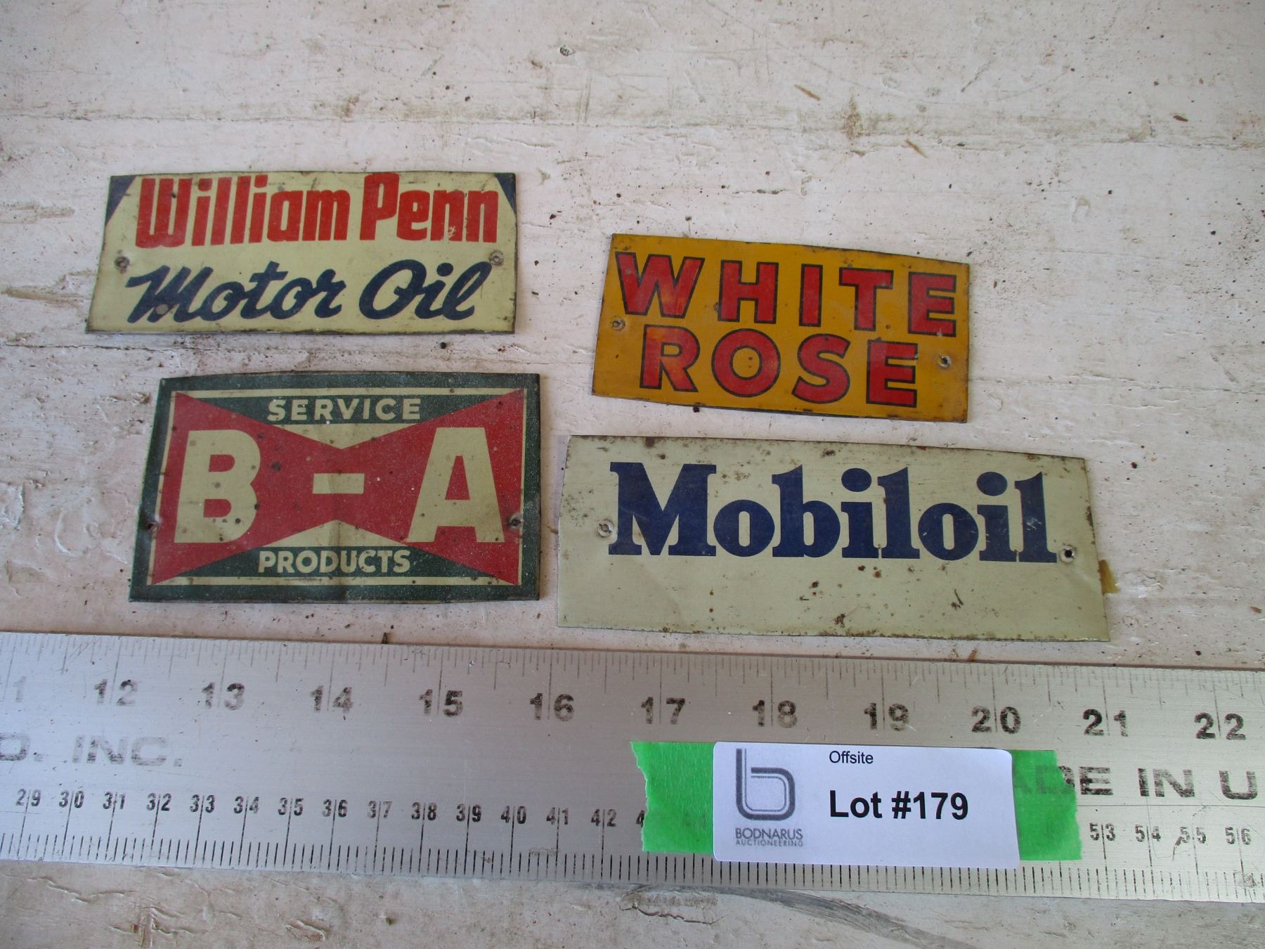 (4) Oil tags B/A, Mobil oil, white rose, william penn