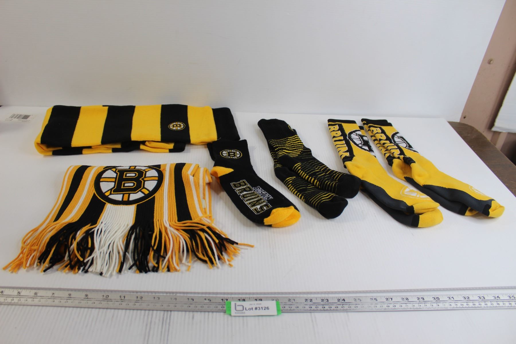 (4) Pairs Boston Bruins Socks, (2) Scarves