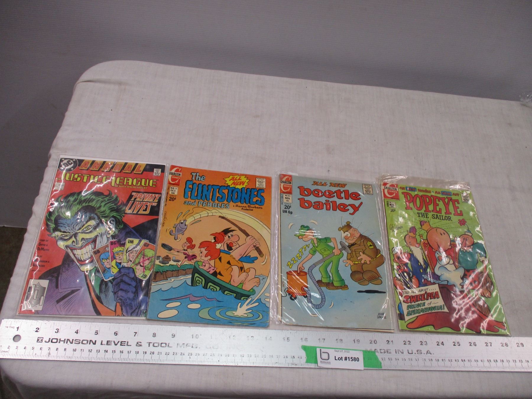 (4) Popeye, Beetle Bailey, Flintstones, Justice League