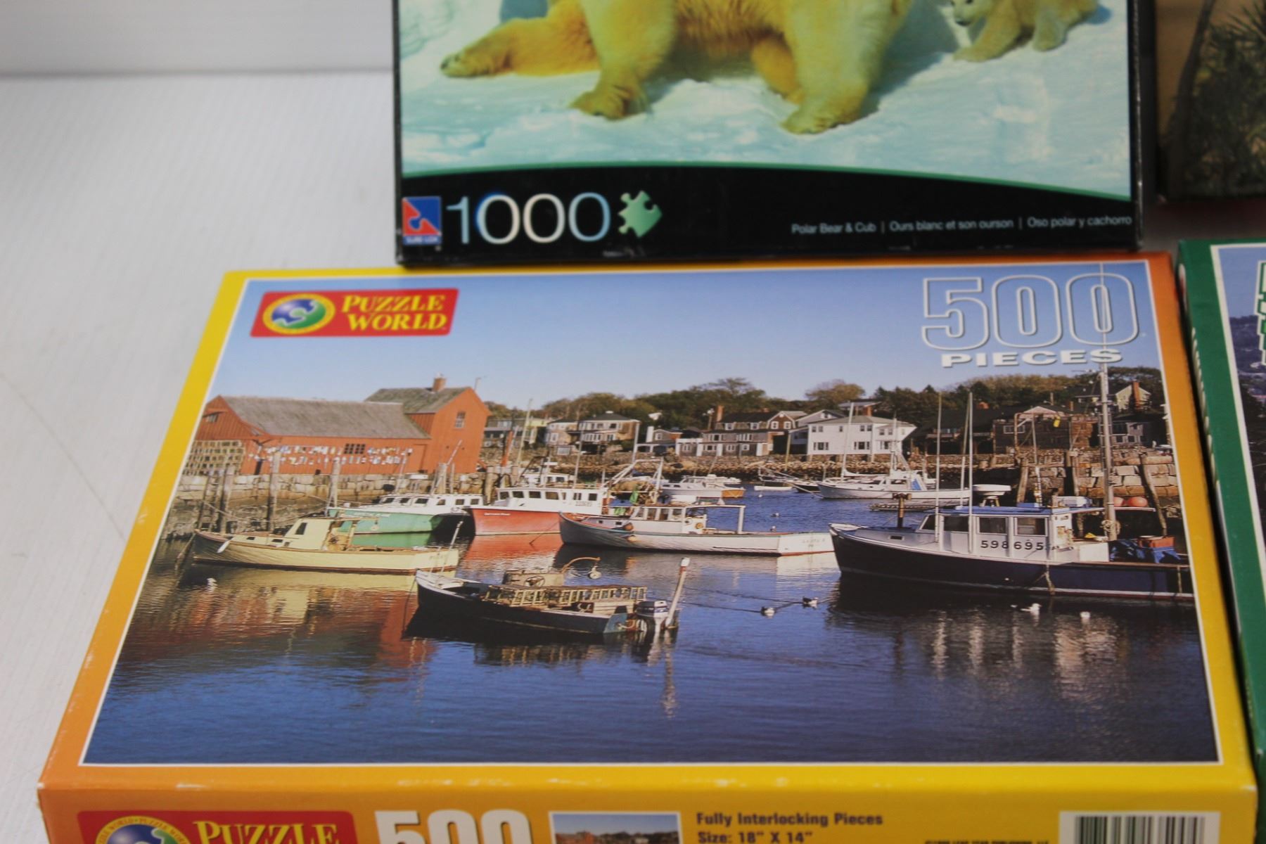 (4) Puzzles: Polar Bears, Boats, Villa, Tropical Beach - as is