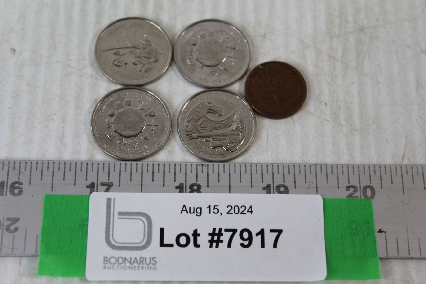 (4) Quarters - (1) 1999, (3) 2000, 1946 Canadian Penny