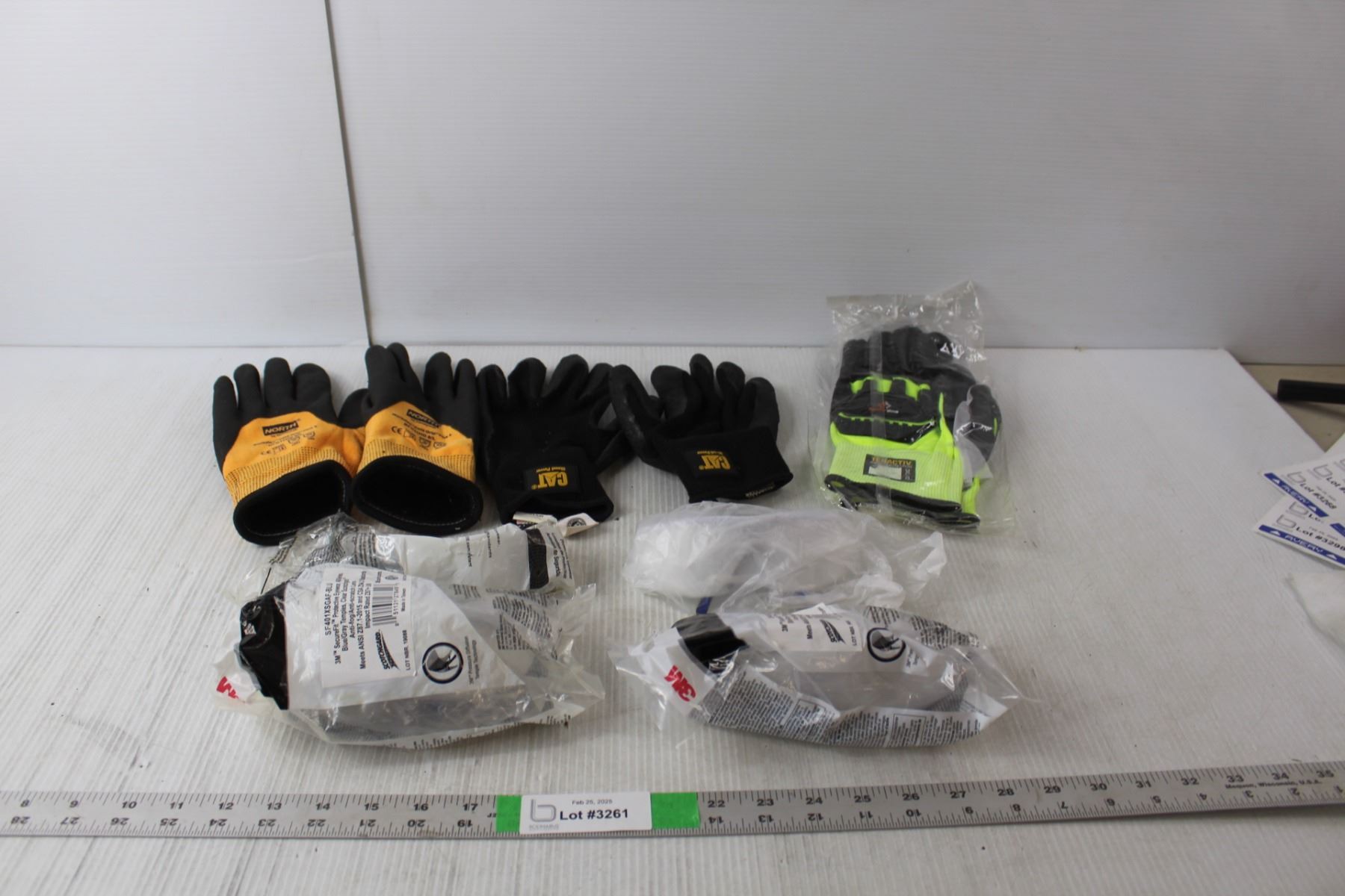 (4) Safety Glasses-Sealed, (3) Pairs of Work Gloves