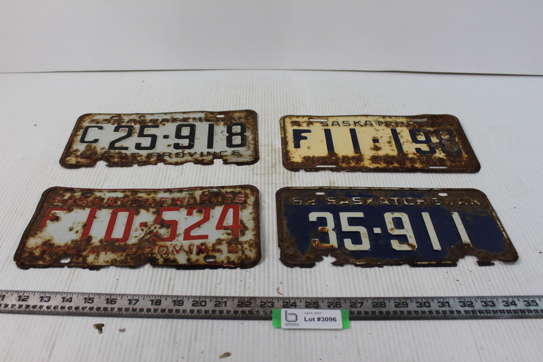 (4) Saskatchewan License Plates (1952, 1957, 1958, 1959)