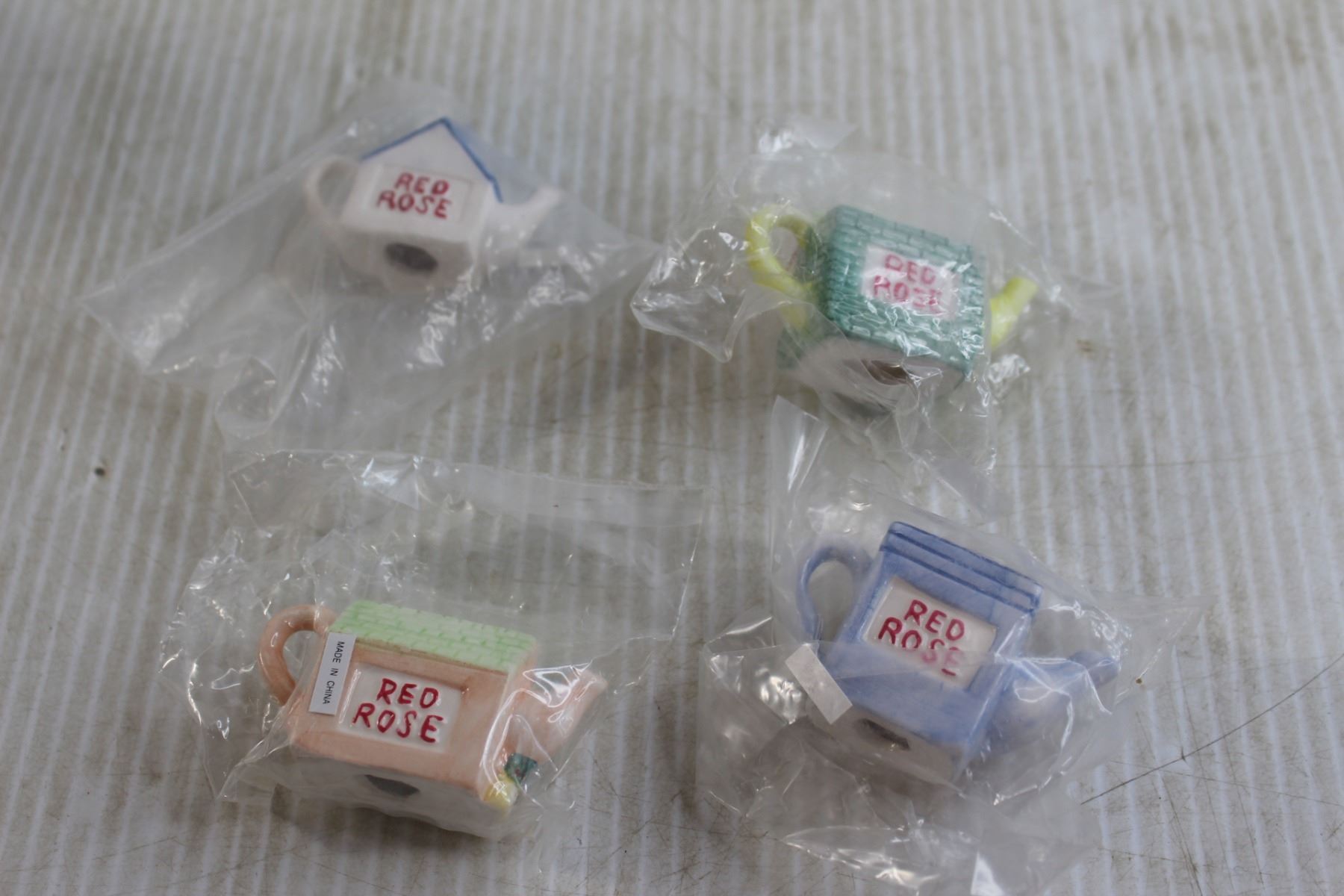 (4) Sealed Red Rose Teapot Figurines