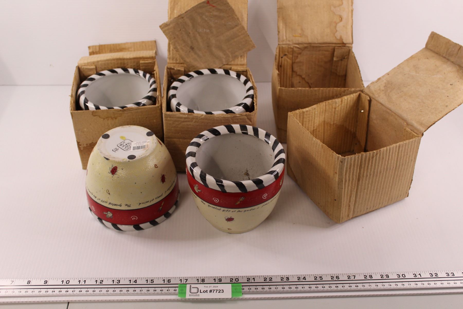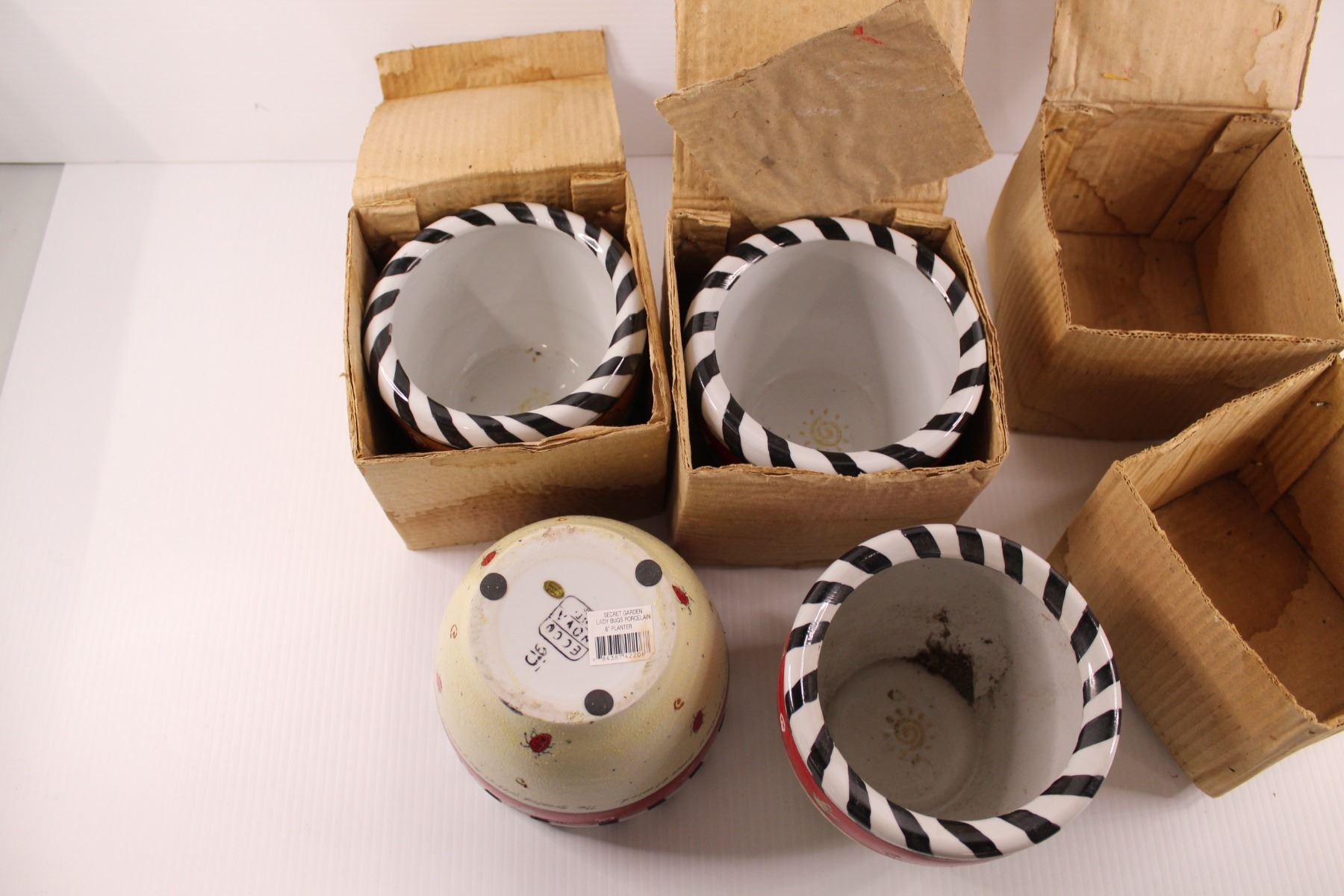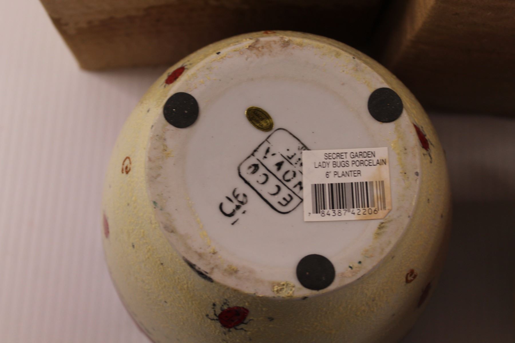 (4) Secret Garden Lady Bugs Porcelain 6" Planters