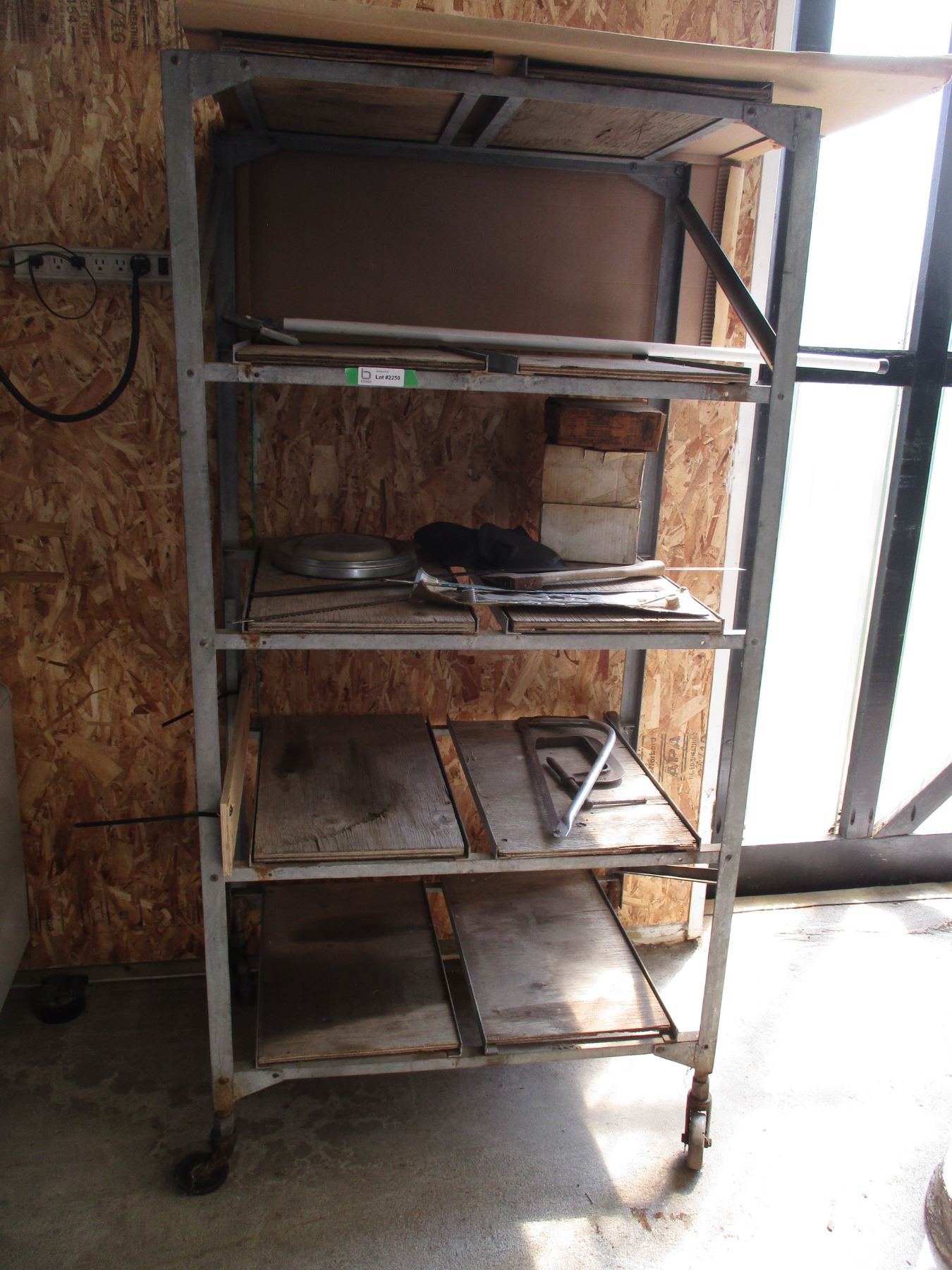 4 Shelf Unit with Contents on Wheels (36 x 25 x 73")