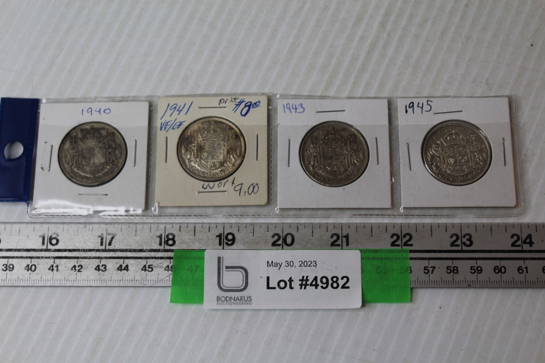 (4) Silver Canadian 50 Cent Pieces ( 1940 - 41 - 43 - 45)