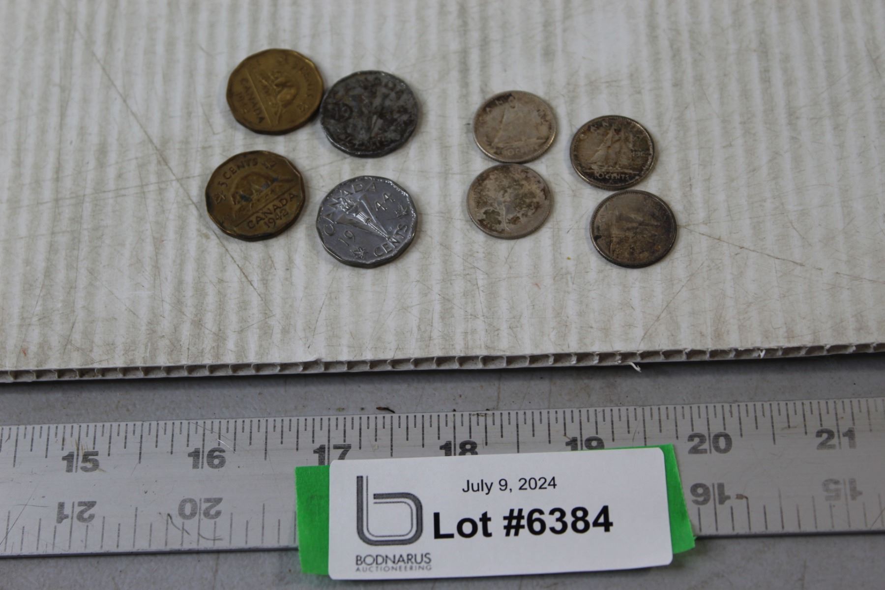 (4) Silver Dimes, (4) Canadian Nickels - (2) 1942, 1944, 1945