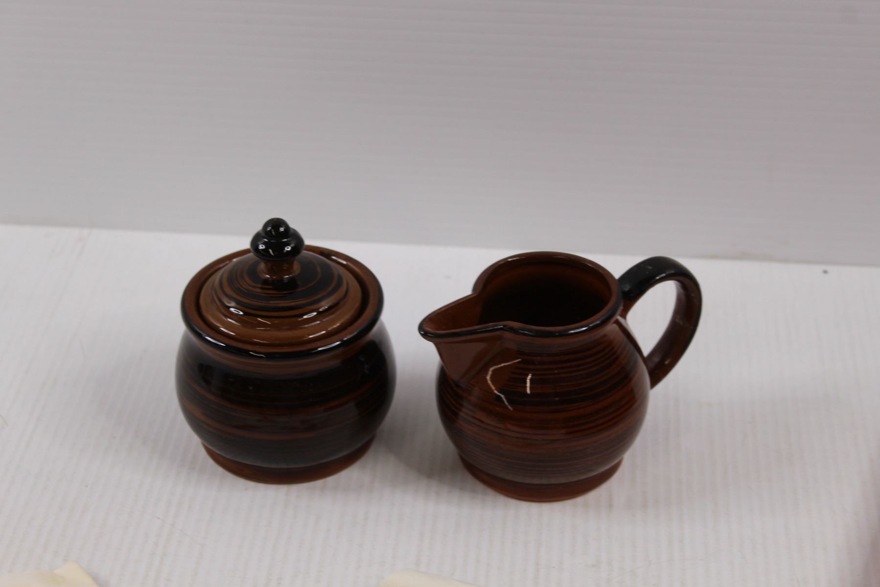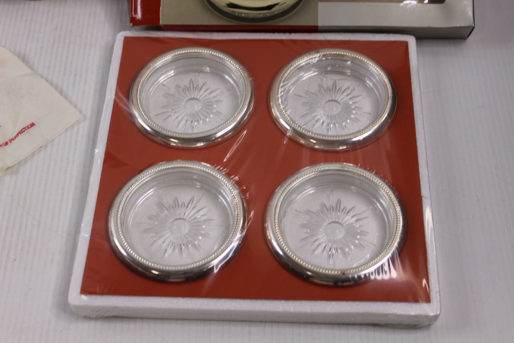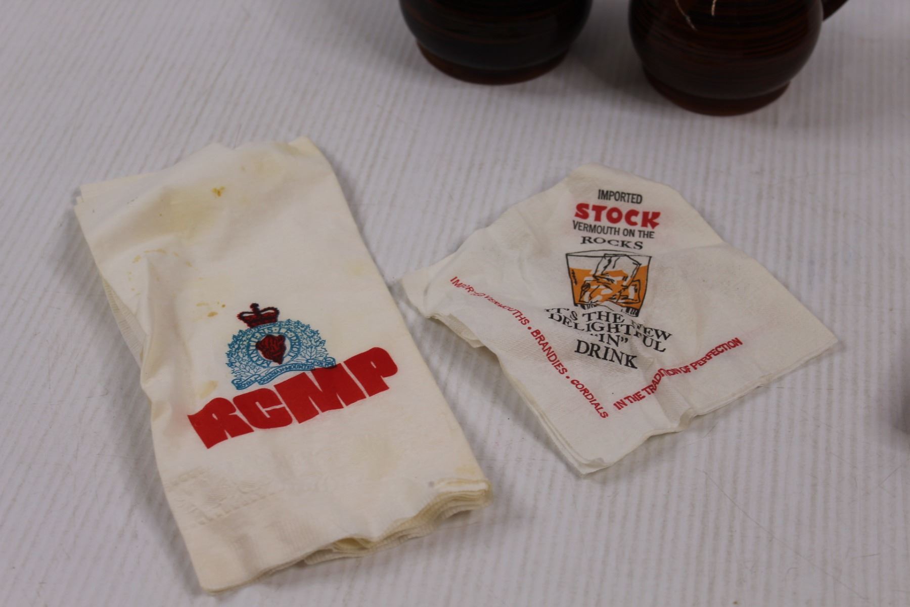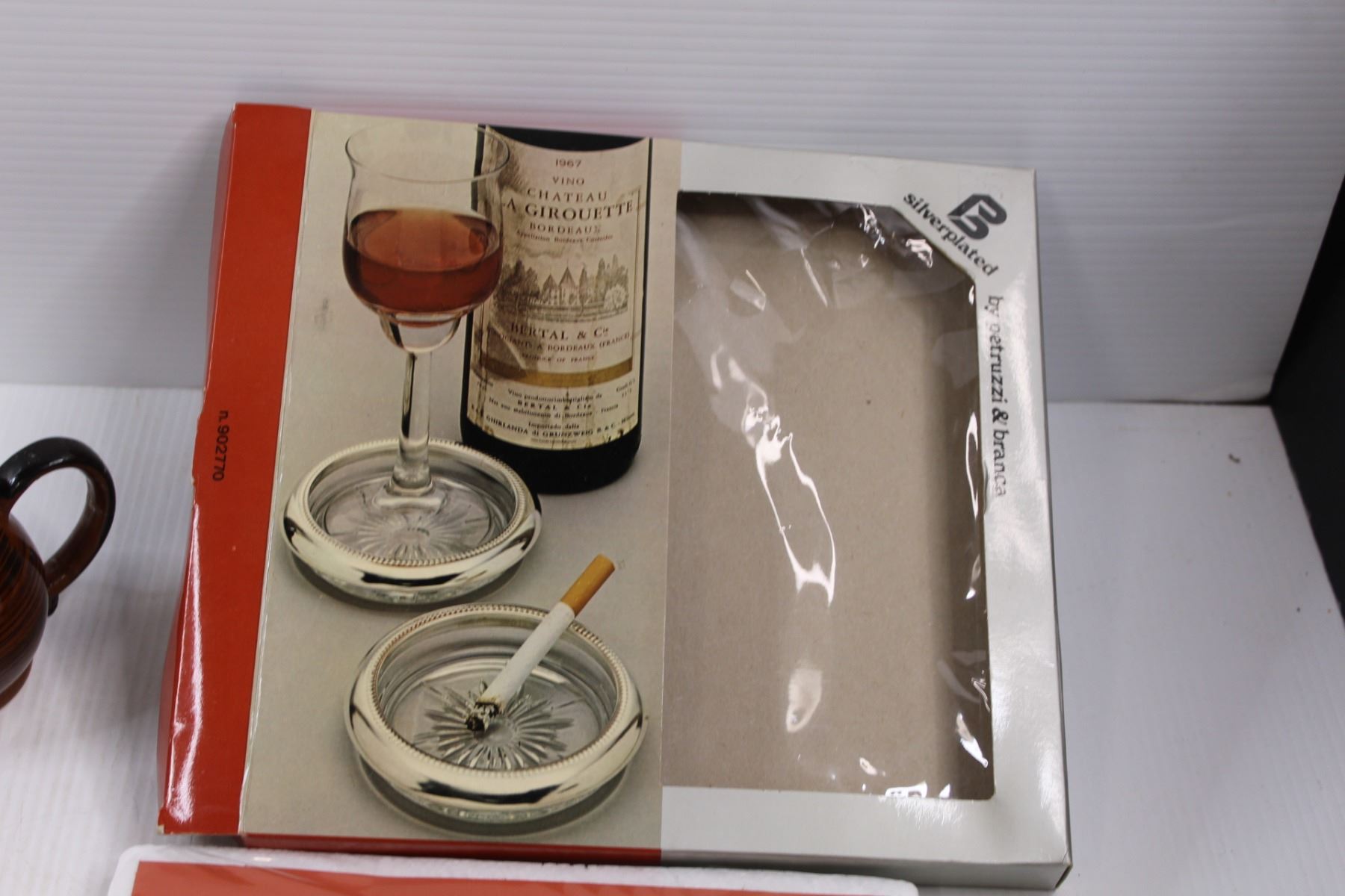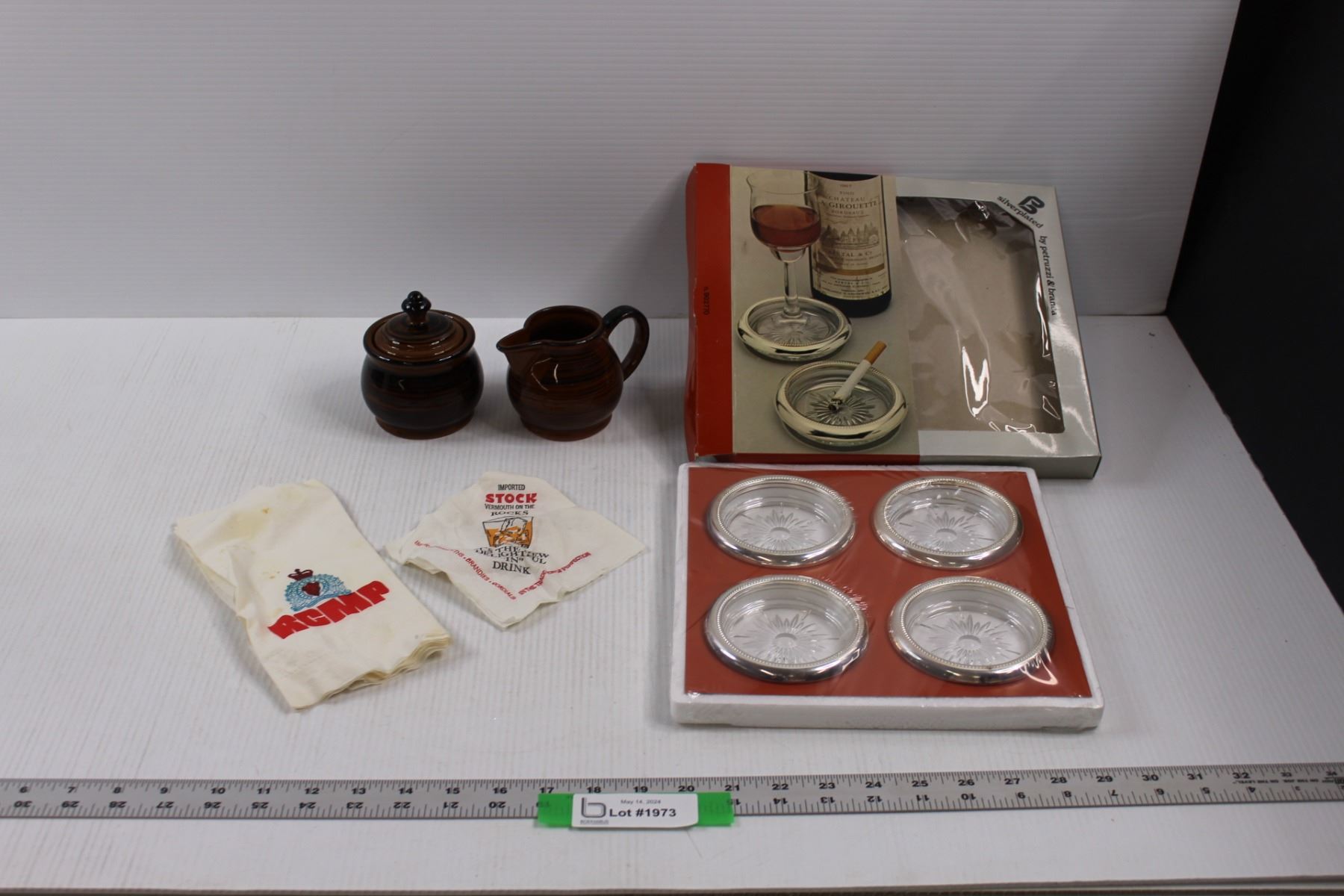 (4) Silver Plated Ashtrays (NIB), Clay Cream And Sugar Dishes & (2) Paper Napkins