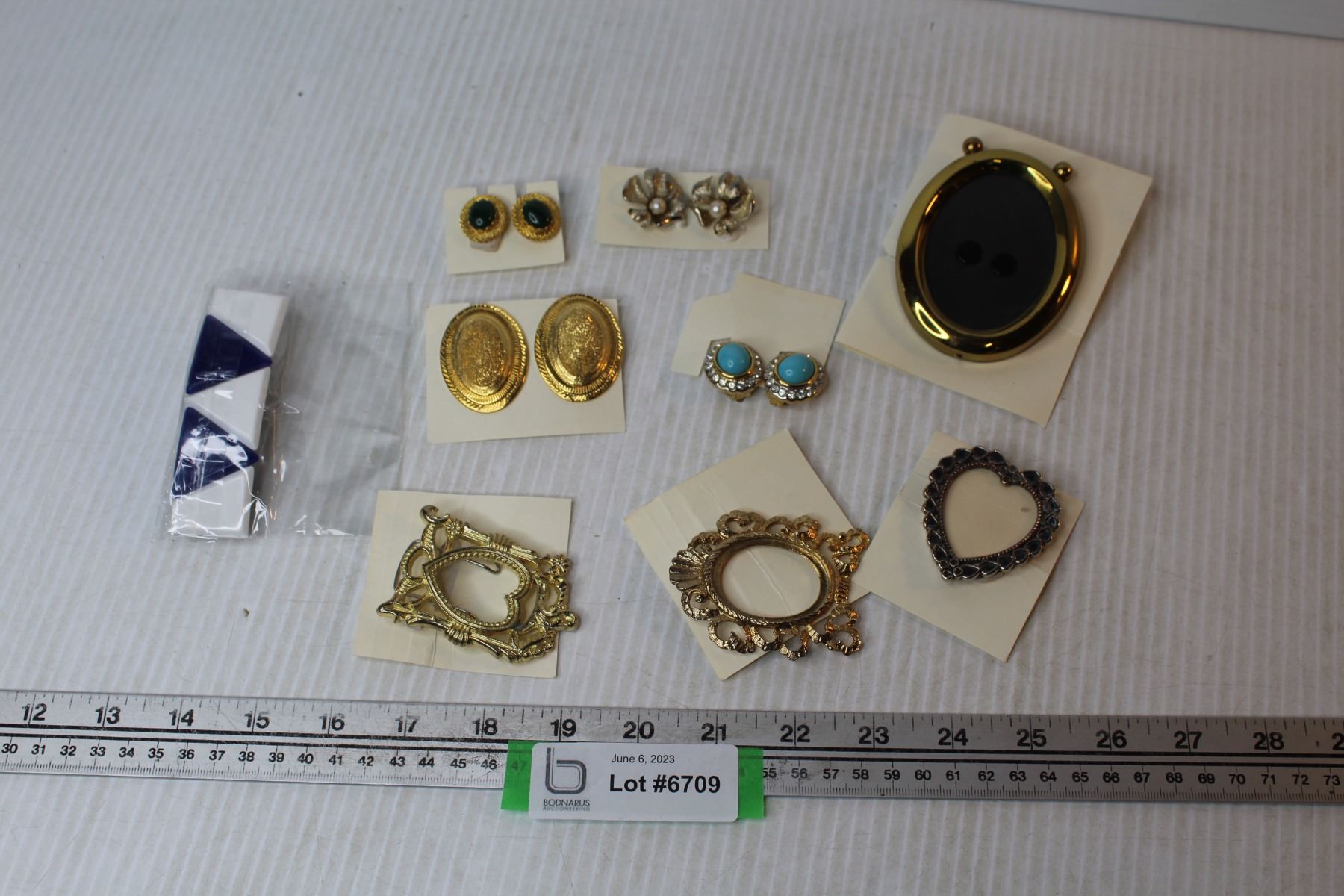 (4) Small Photo Frames - Hair Clip - (4) Pair of Earrings