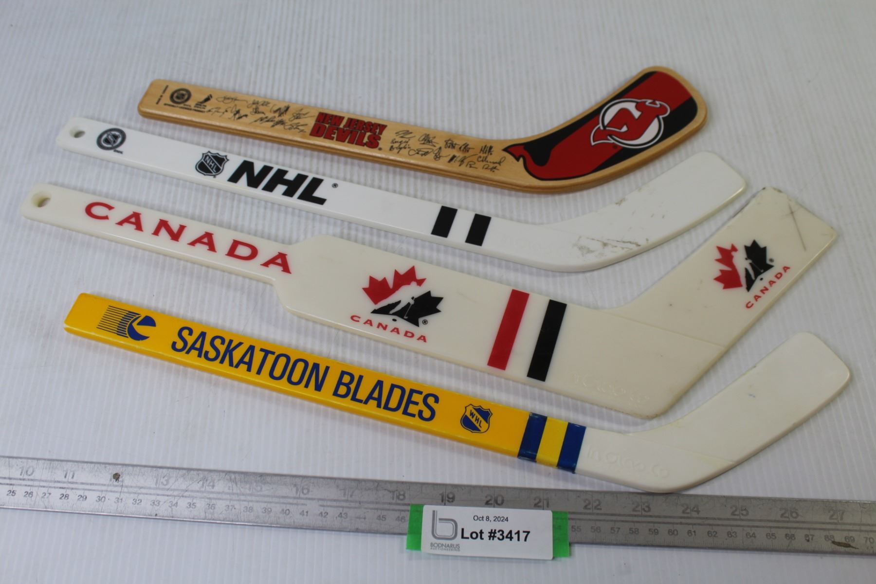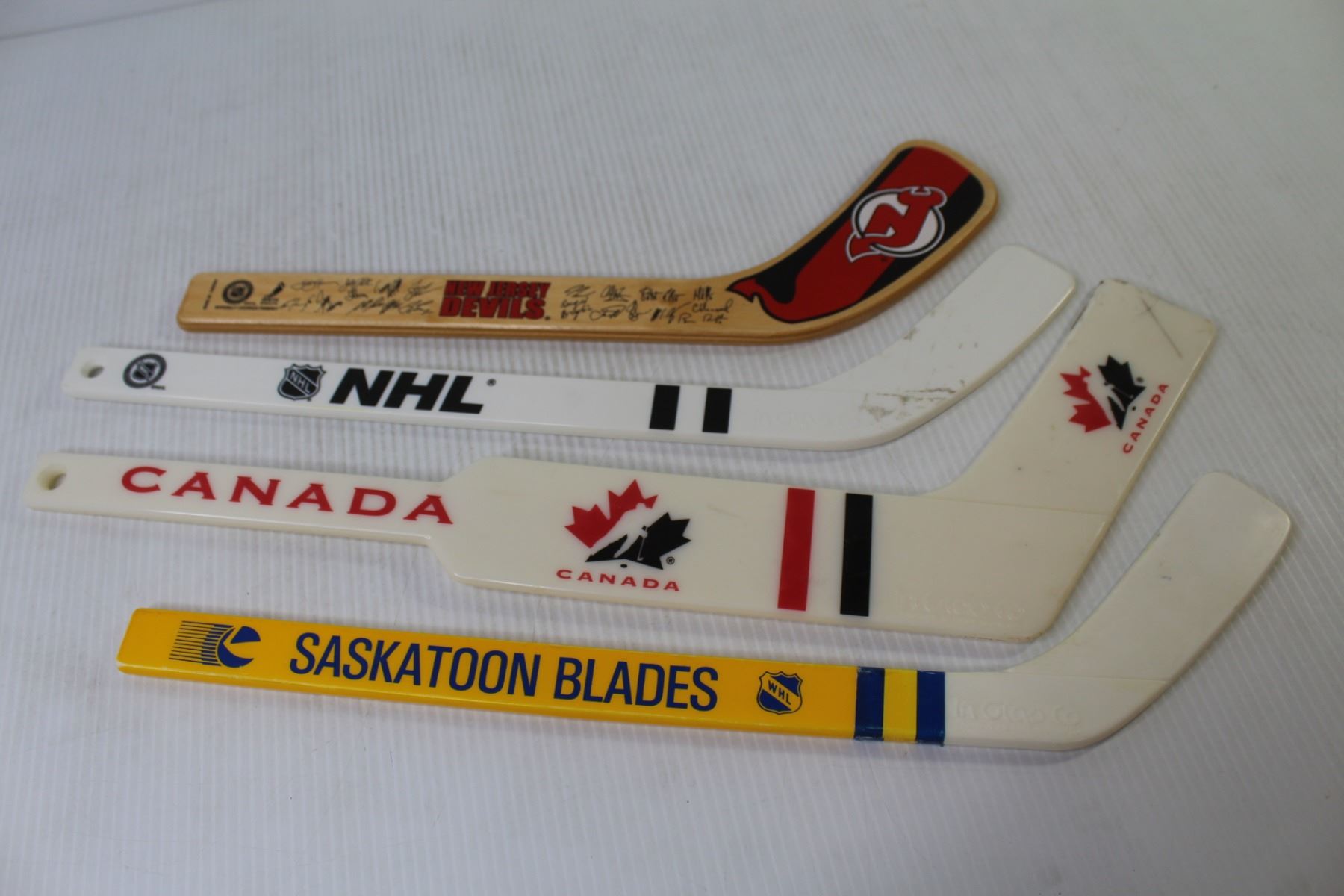 (4) Small Souvenir Hockey Sticks - Canada - NHL - Saskatoon Blades - New Jersey Devils
