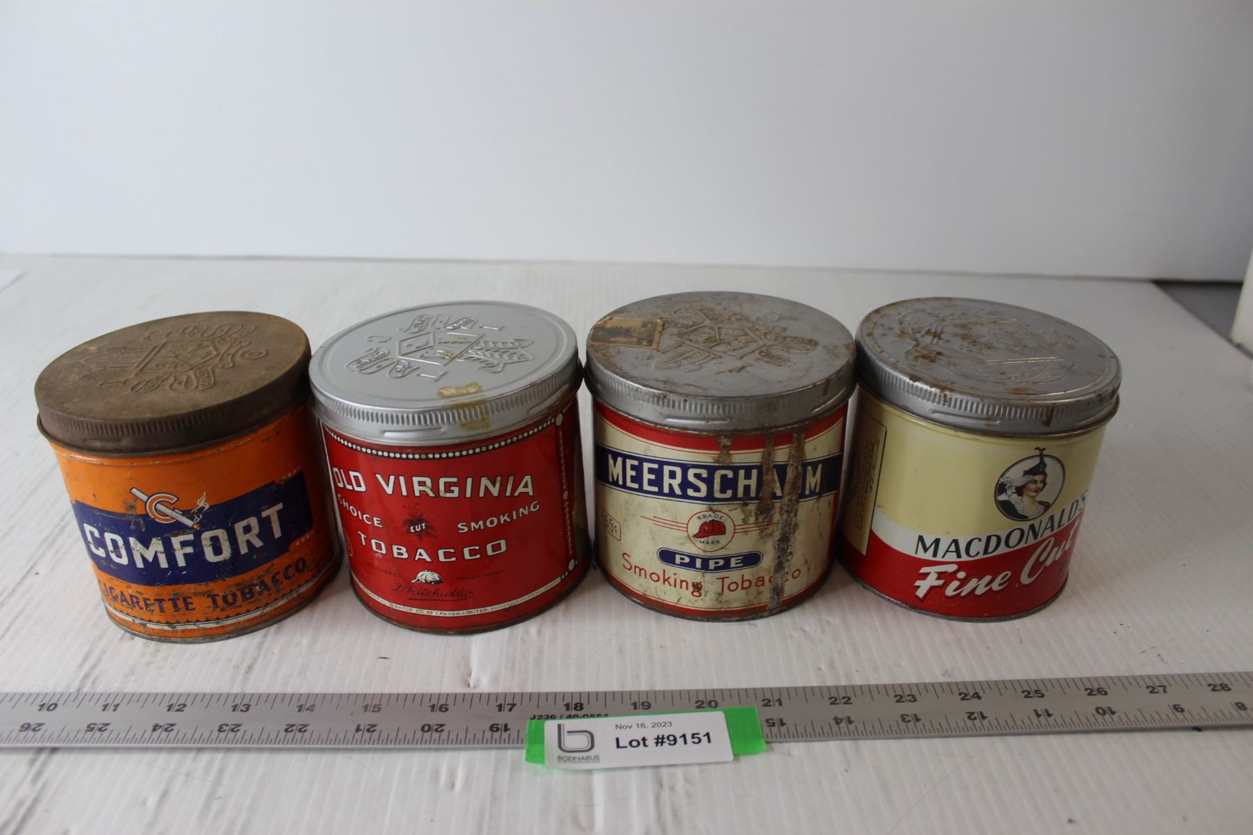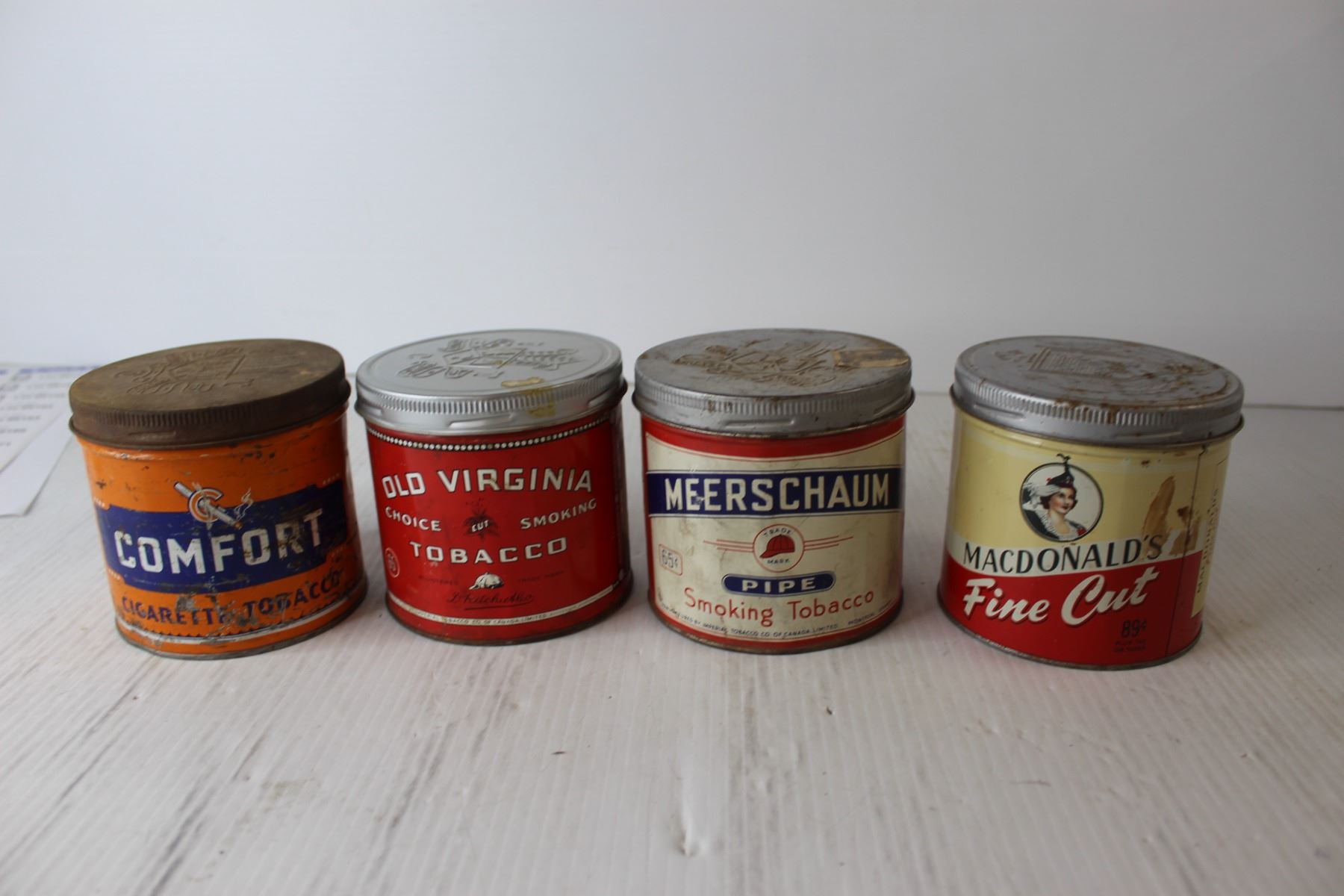 (4) Tobacco Tins - Comfort; Old Virginia; Meerschaum; MacDonald's