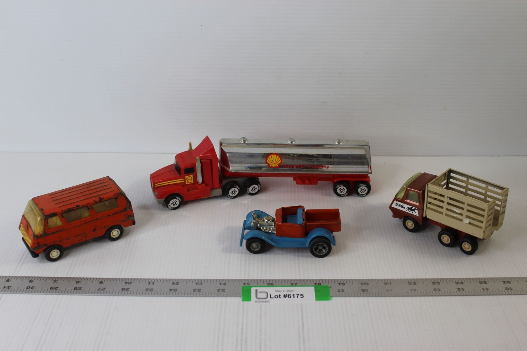 (4) Tonka Model Toys: Semi, Van, Hot Rod, Hay Truck