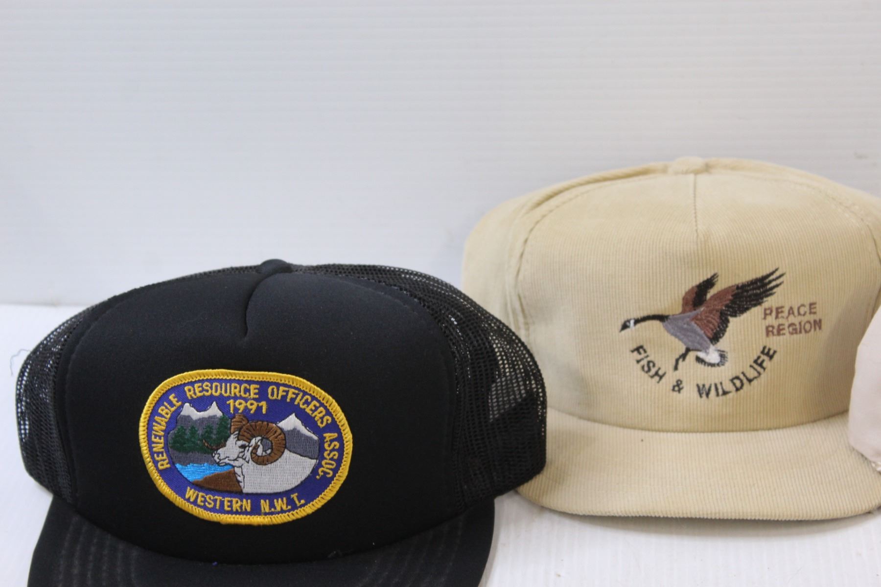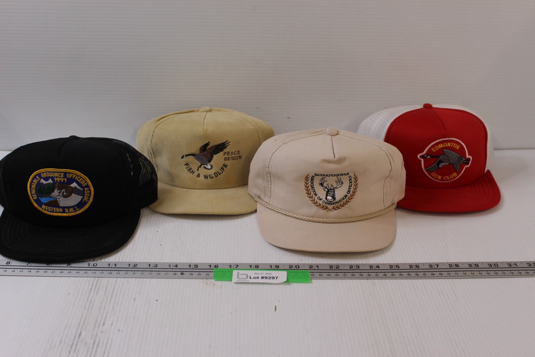(4) Vintage Baseball Hats: Edmonton Gun Club, Peace Region Wildlife, Saskatchewan Conservation, N.W.T. 1991 Officer Resources