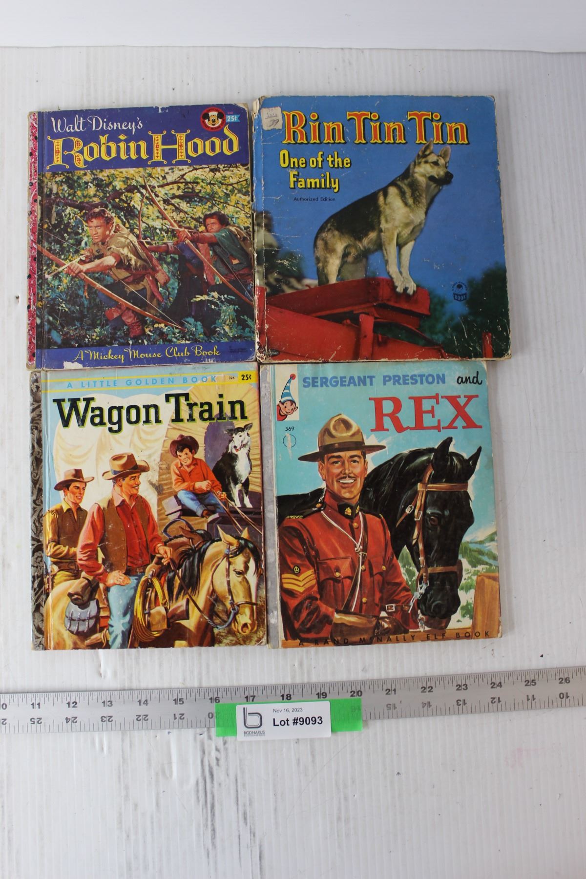 (4) Vintage Children's Books, Hard Cover - Rin Tin Tin, Robin Hood, Wagon Train, Sergeant Preston and Rex
