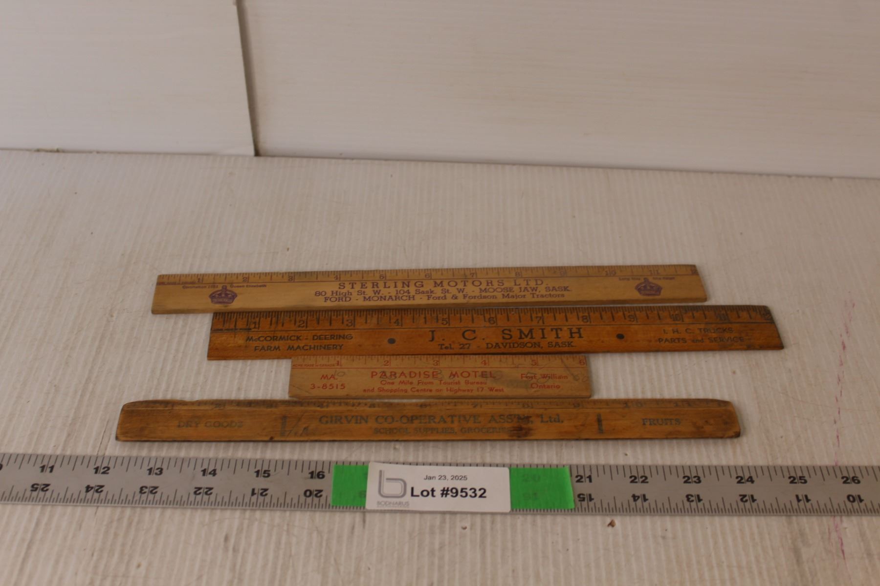 (4) Vintage Rulers- Girvin Co-operative, J.C. Smith, Sterling Motors, Paradise Motel