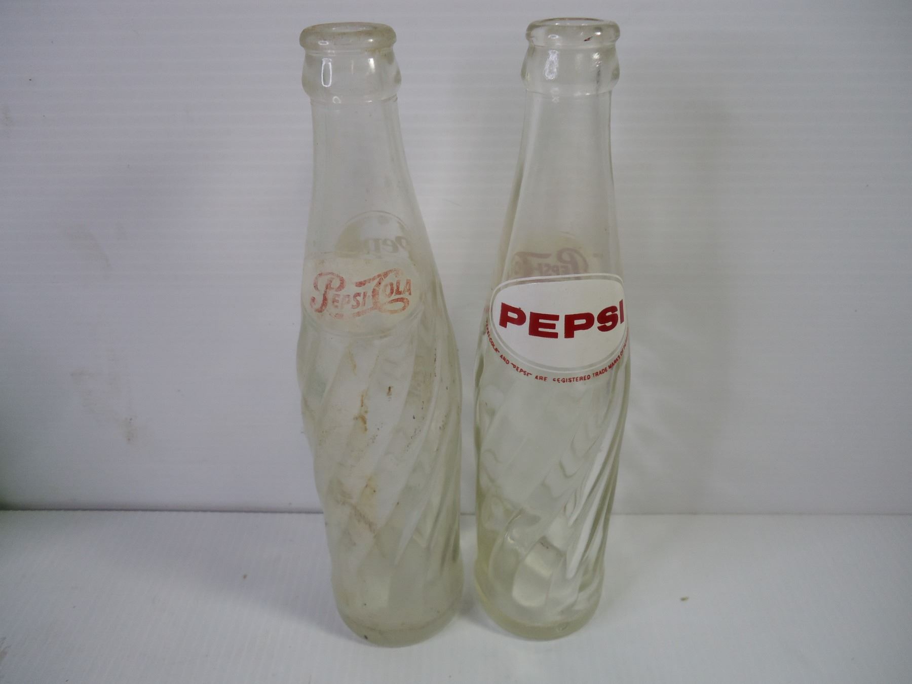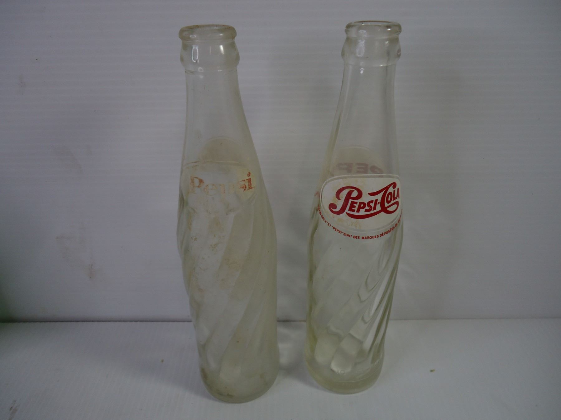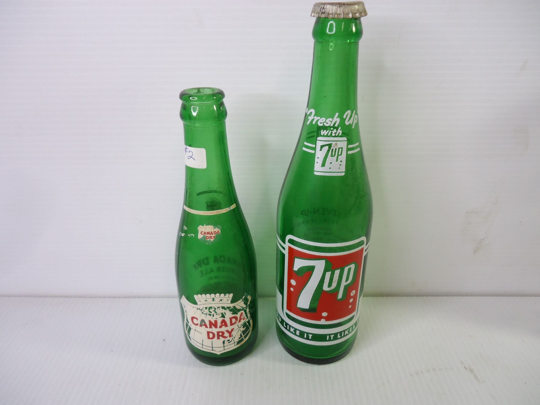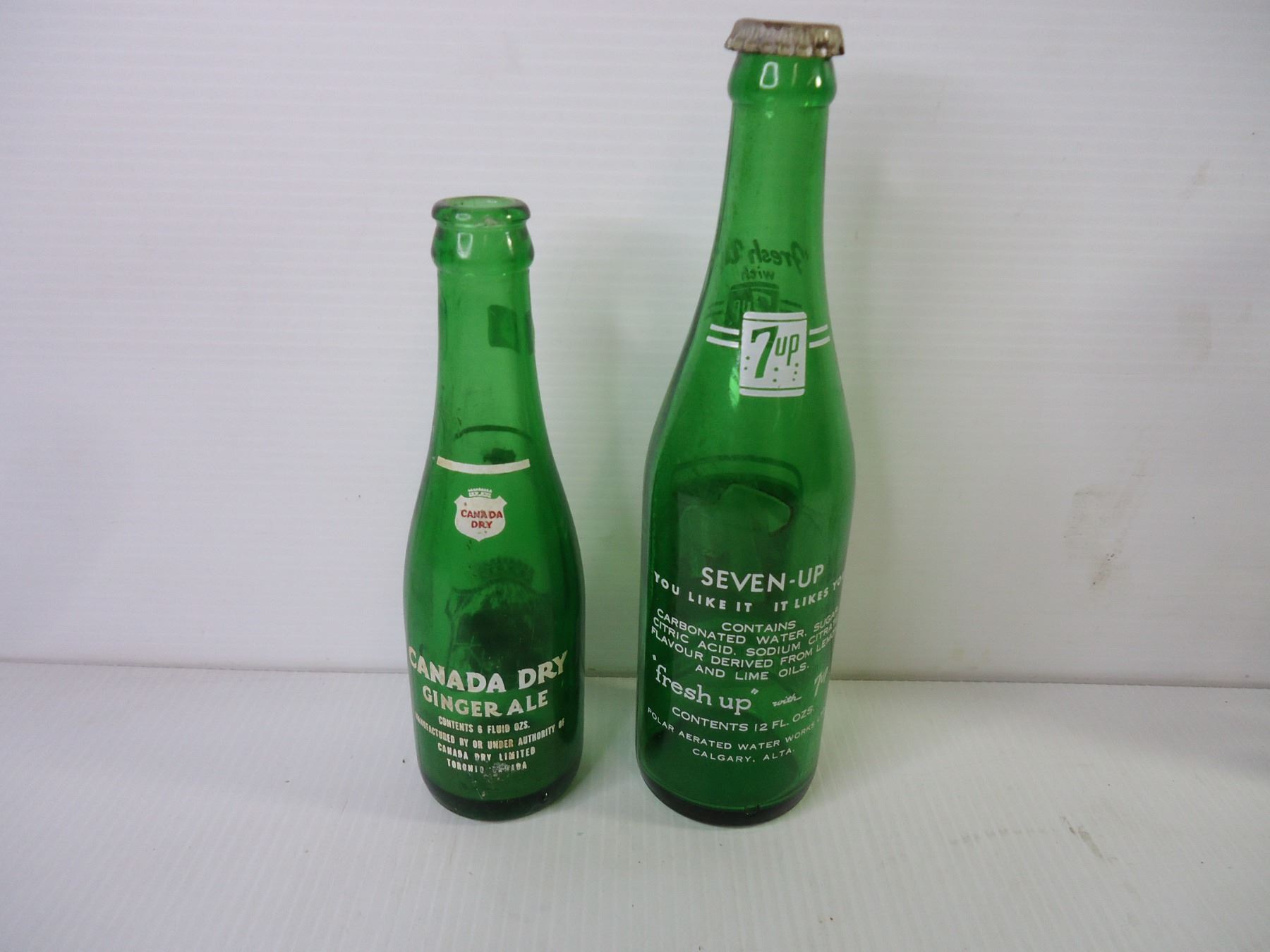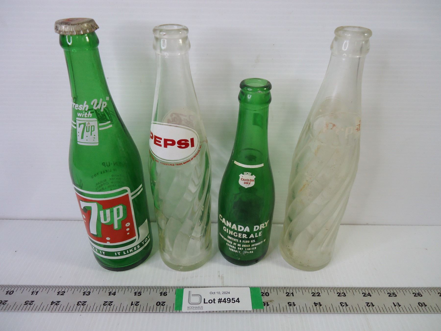 (4) Vintage Soft Drink Bottles - Pepsi, 7UP, Canada Dry
