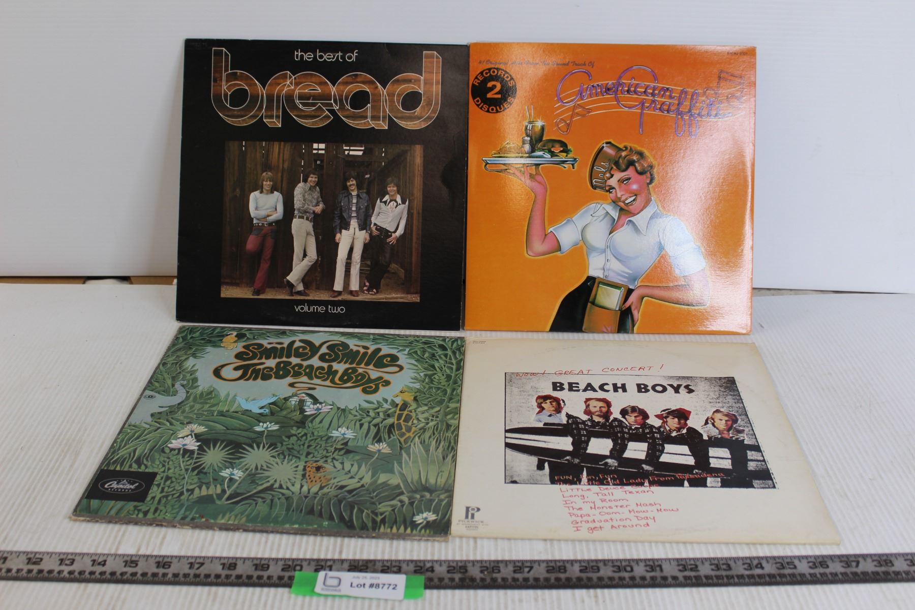 (4) Vinyl Records (The Beach Boys, Bread, American Graffiti)
