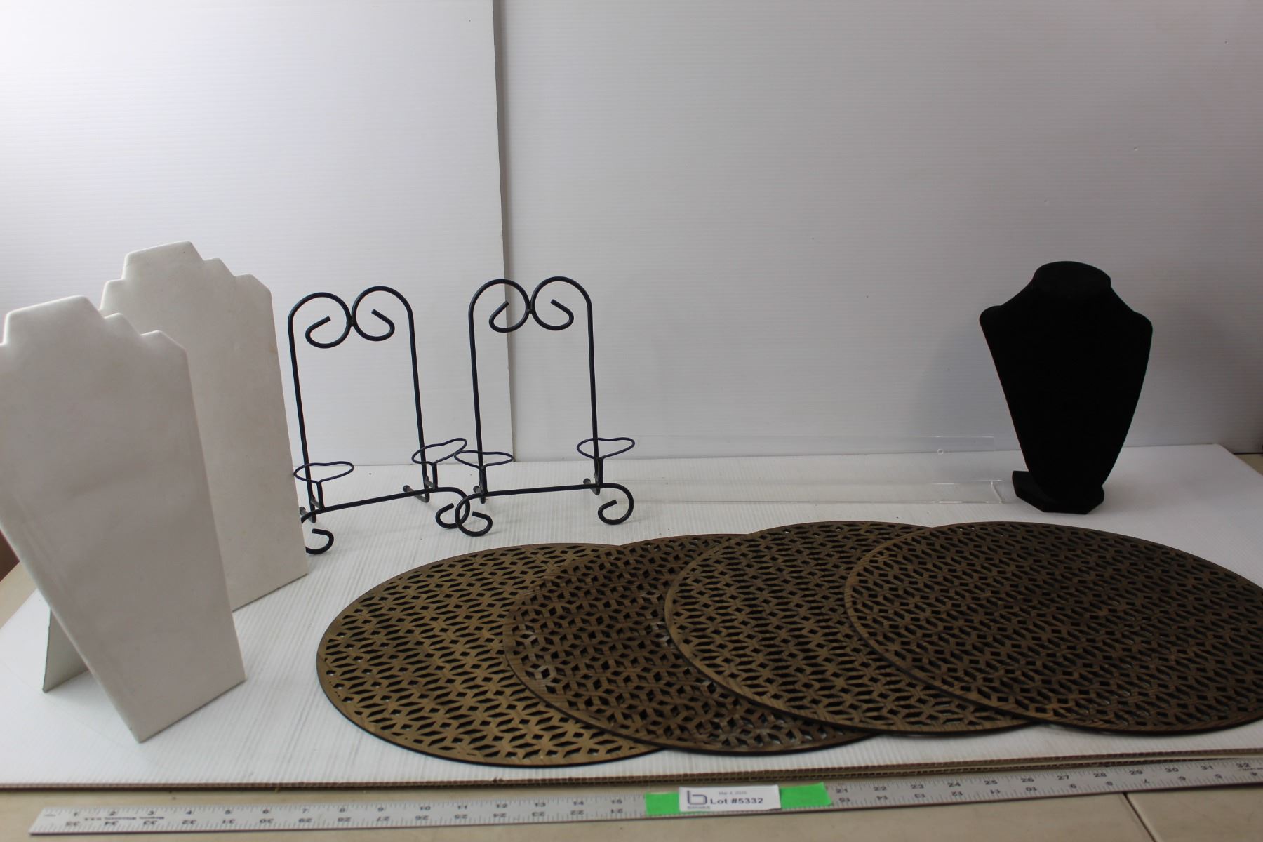 (4) Wood Placemats, (3) Jewellery Display Pieces, (2) Metal Photo Holders