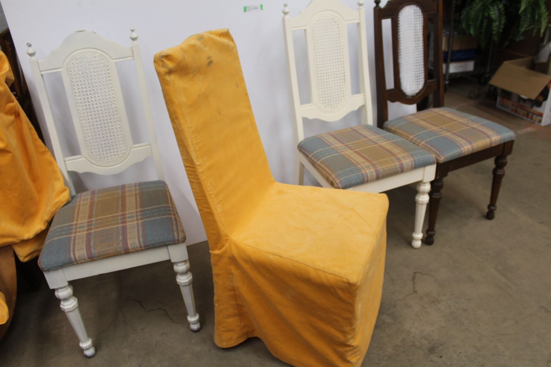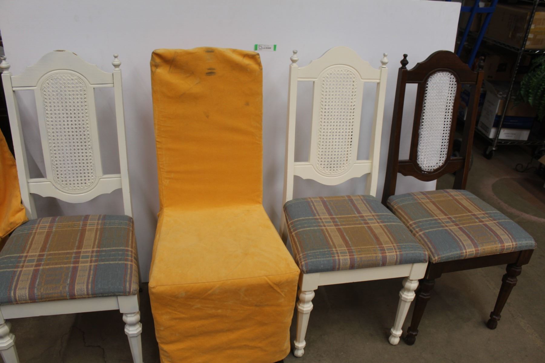 *(4) Wooden Chairs w/Covers & Padded Seats (covers have marks)