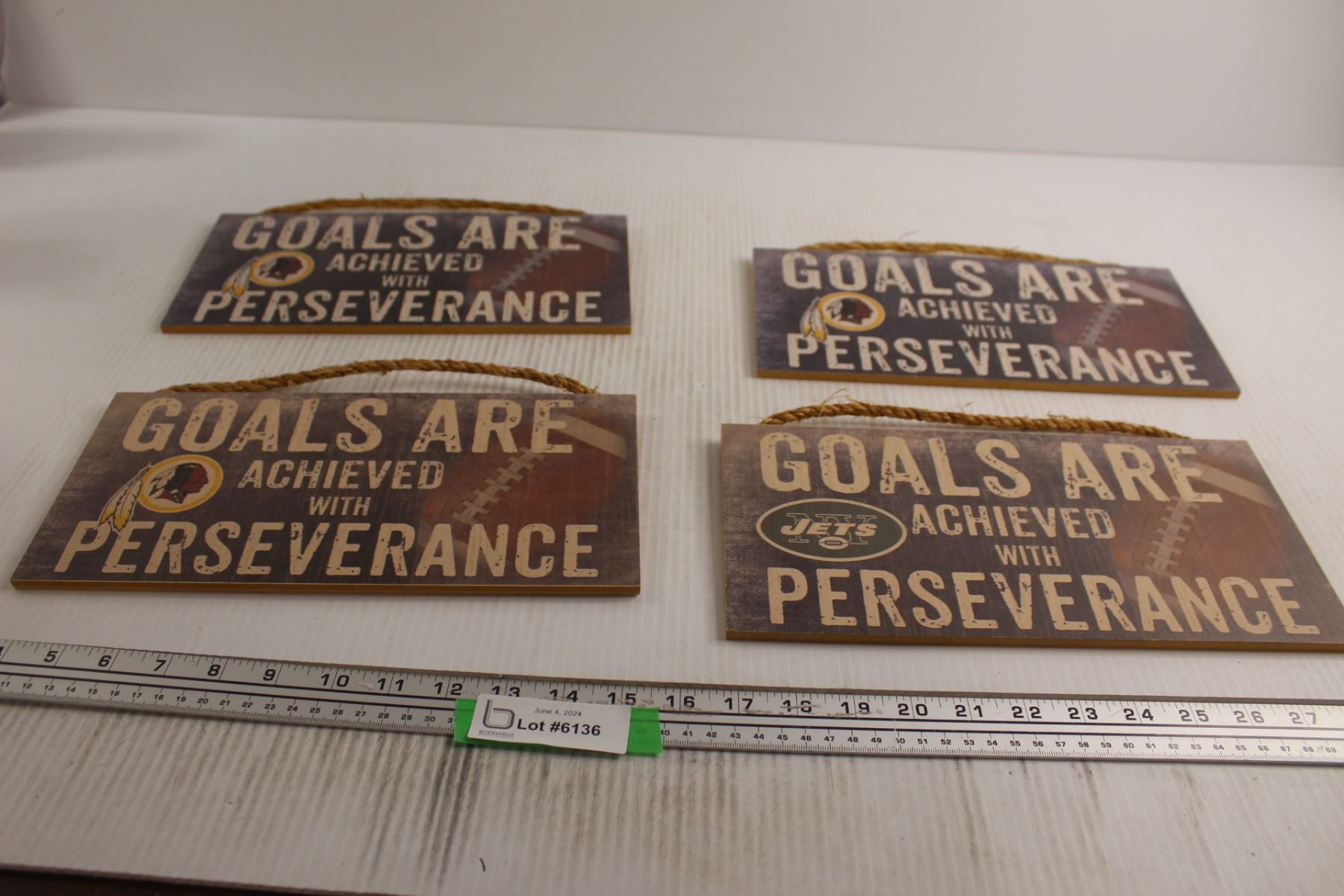 (4) Wooden Placards - Washington Redskins, NY Jets, 12" x 6"