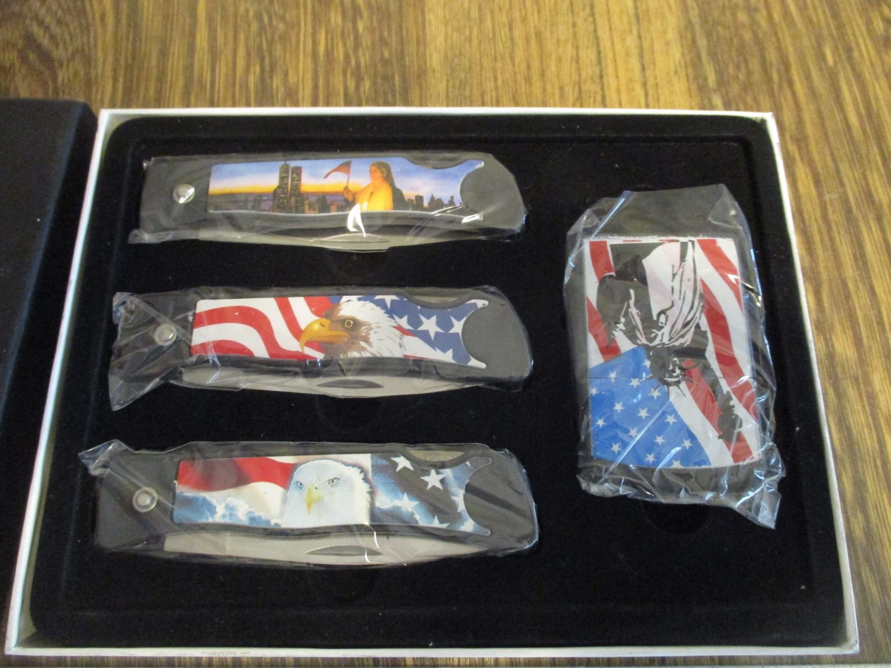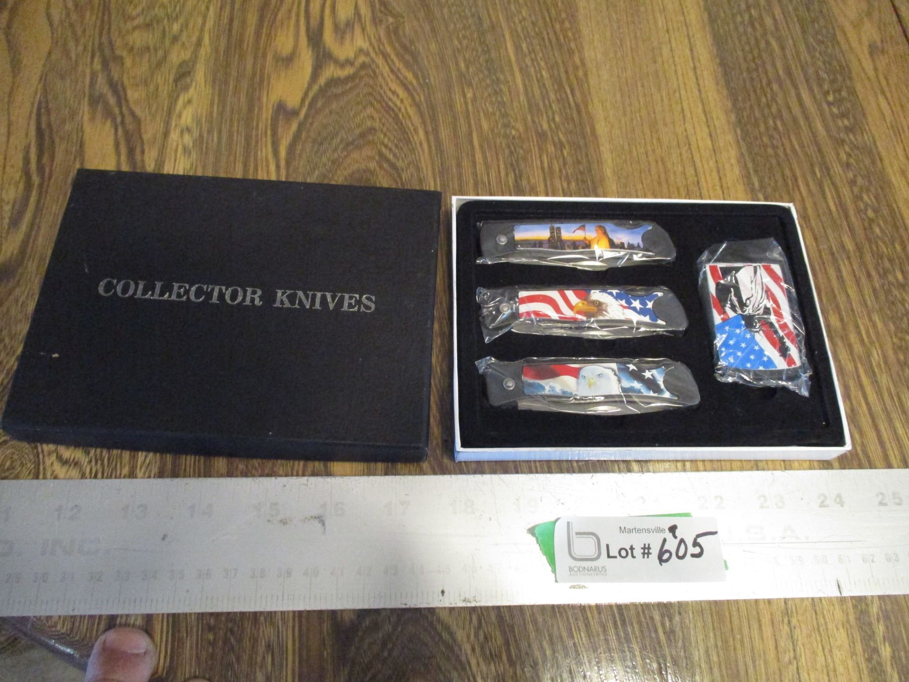 (4 pc) Collector Knife Set - Three Knives & Lighter