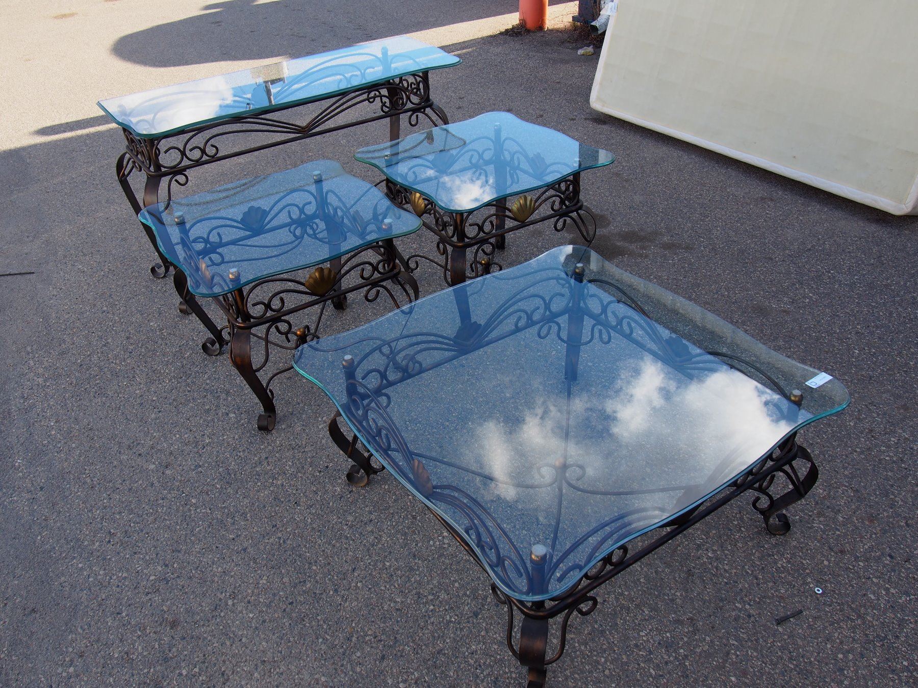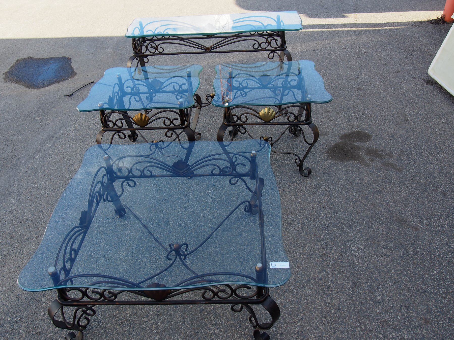 4 piece Metal & Glass Coffee, Sofa, and End Tables