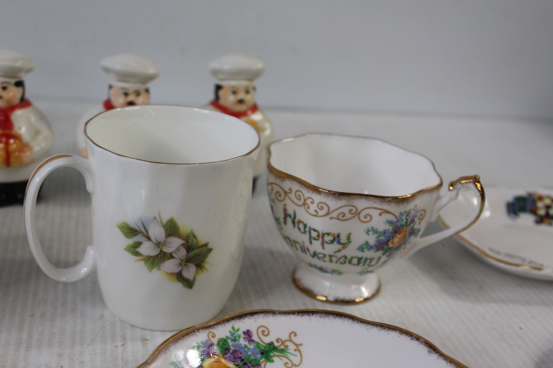 (4) saucers, Butter Dish, (3) Cups, Sugar Dish, Decorative Tray, (6) Oil and Vinegar Jars