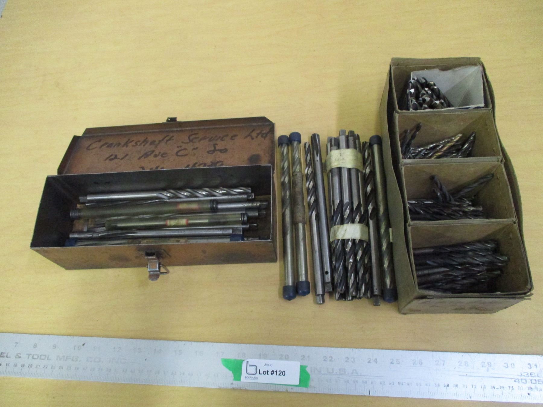 (40+) Misc. Lot of Used Drill Bits In Metal & Container Box